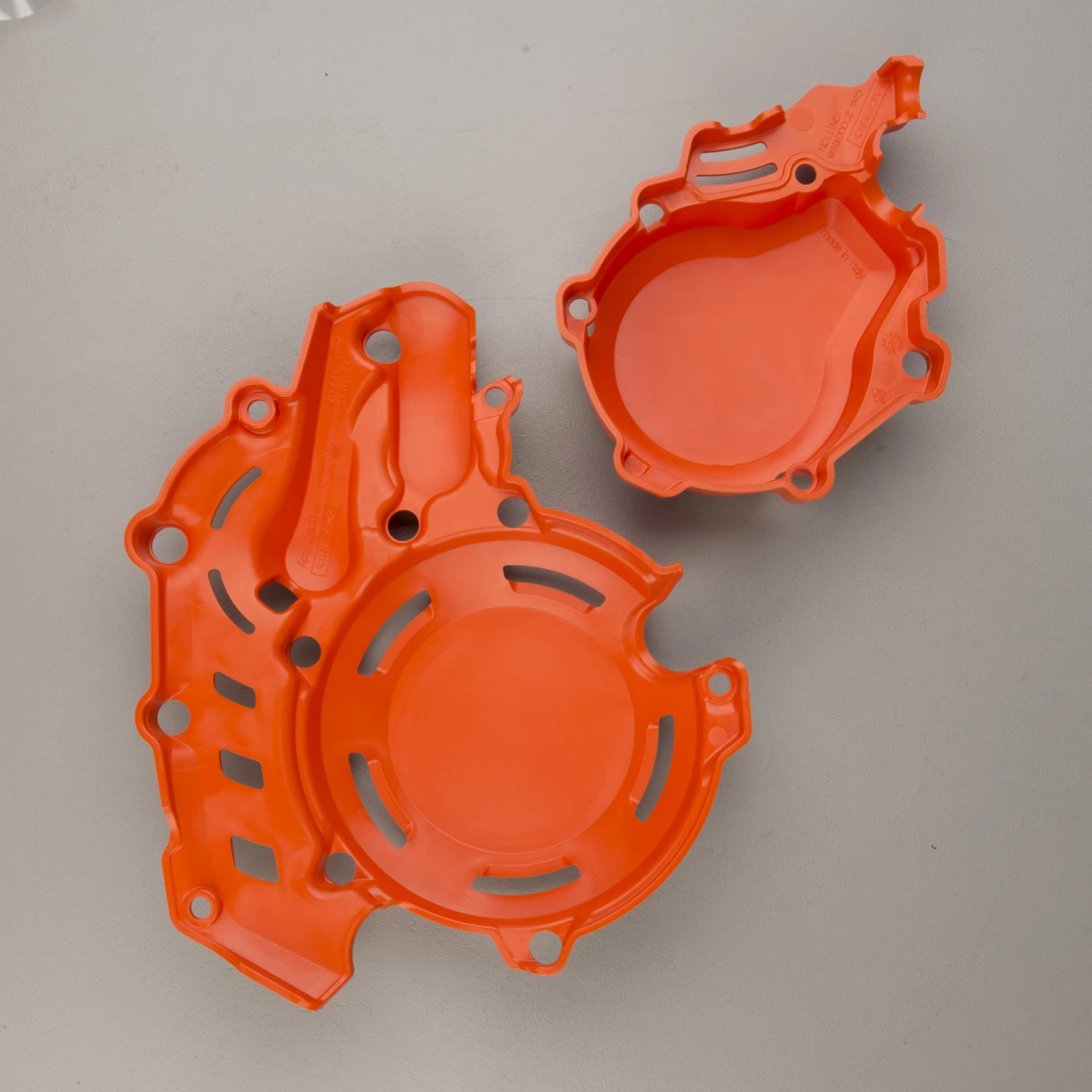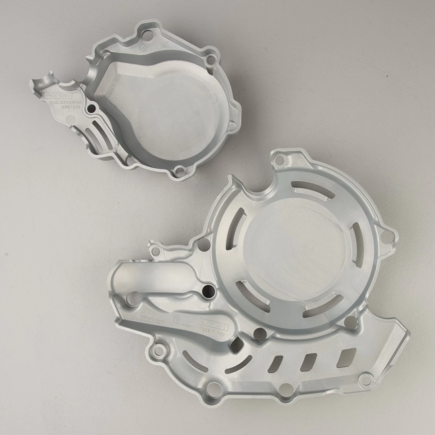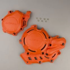 Crankcase and Ignition clutch covers that protect against wear from boots, impacts, dirt, mud, and other debris.