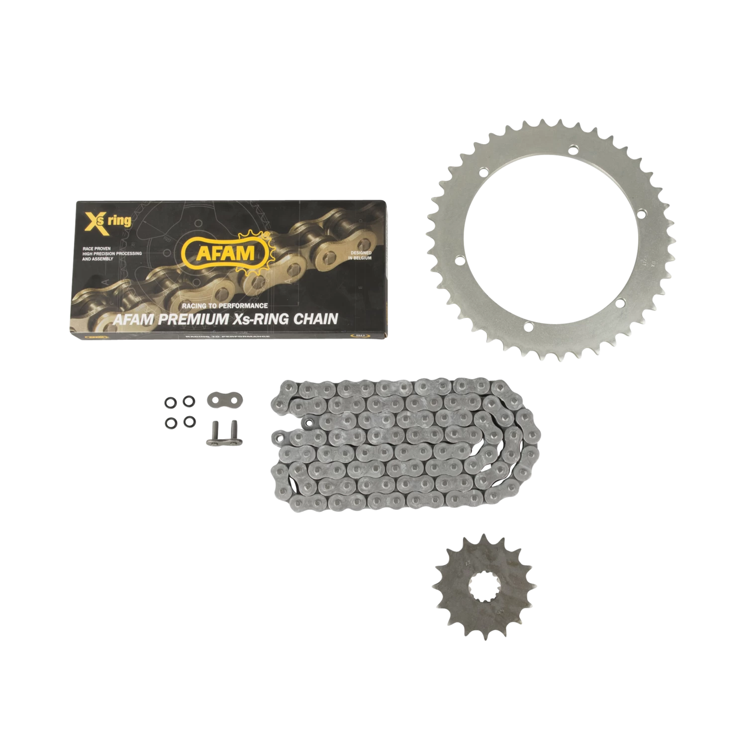 With AFAM kits, you get a chain and sprocket in the same package, made to fit your bike!