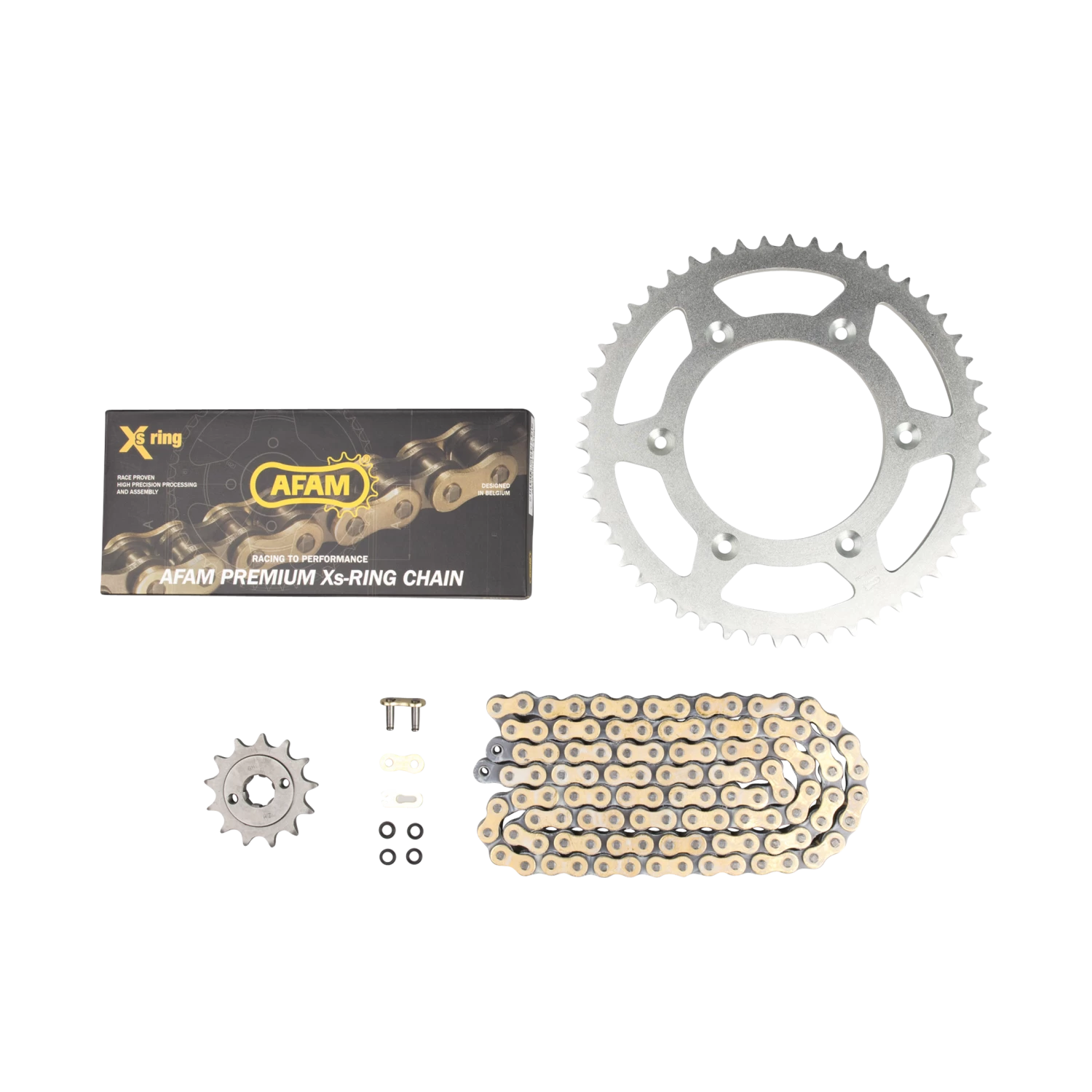 AFAM are famous for their high quality chain & sprocket kits, where the chain length is adapted to the sprocket. When developing new chains, they always strive for the smallest possible loss of power between the engine and rear wheels, low weight, less rustling/noise and above all high durability!