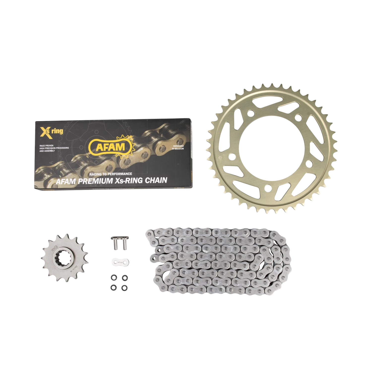 AFAM are famous for their high quality chain & sprocket kits, where the chain length is adapted to the sprocket. When developing new chains, they always strive for the smallest possible loss of power between the engine and rear wheels, low weight, less rustling/noise and above all high durability!