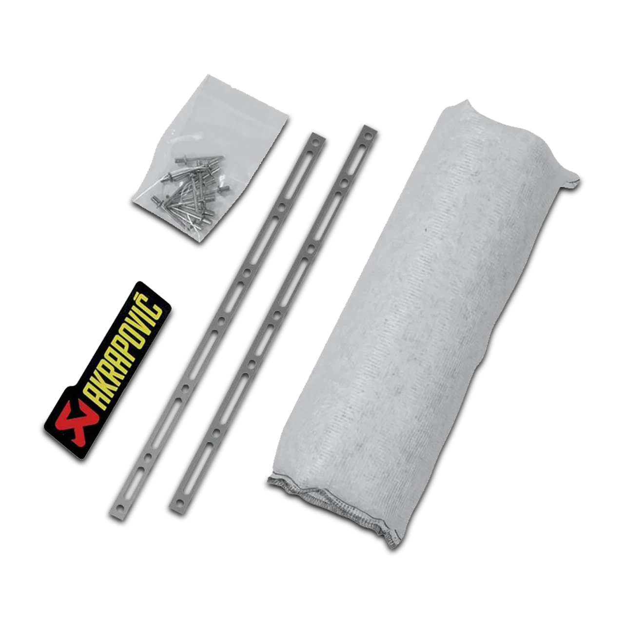 Akrapovič Muffler Repack Kit includes dampening material, tapes, rivets and stickers.