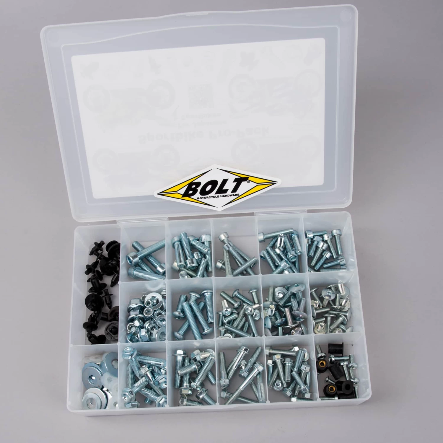 BOLT’s Sport Bike Pro is a must-have to keep at home if you ride a newer Japanese sport bike. This kit is compatible with the majority of newer Honda, Yamaha, Kawasaki and Suzuki models, and contains a mix of 270 screws, nuts, and nylon rivets, and screws for the windscreen.