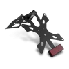 Adjustable steel plate holder including support plate, license plate light LED, supports turn signals reflector.