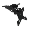 Adjustable steel plate holder including support plate, license plate light LED, supports turn signals reflector.
