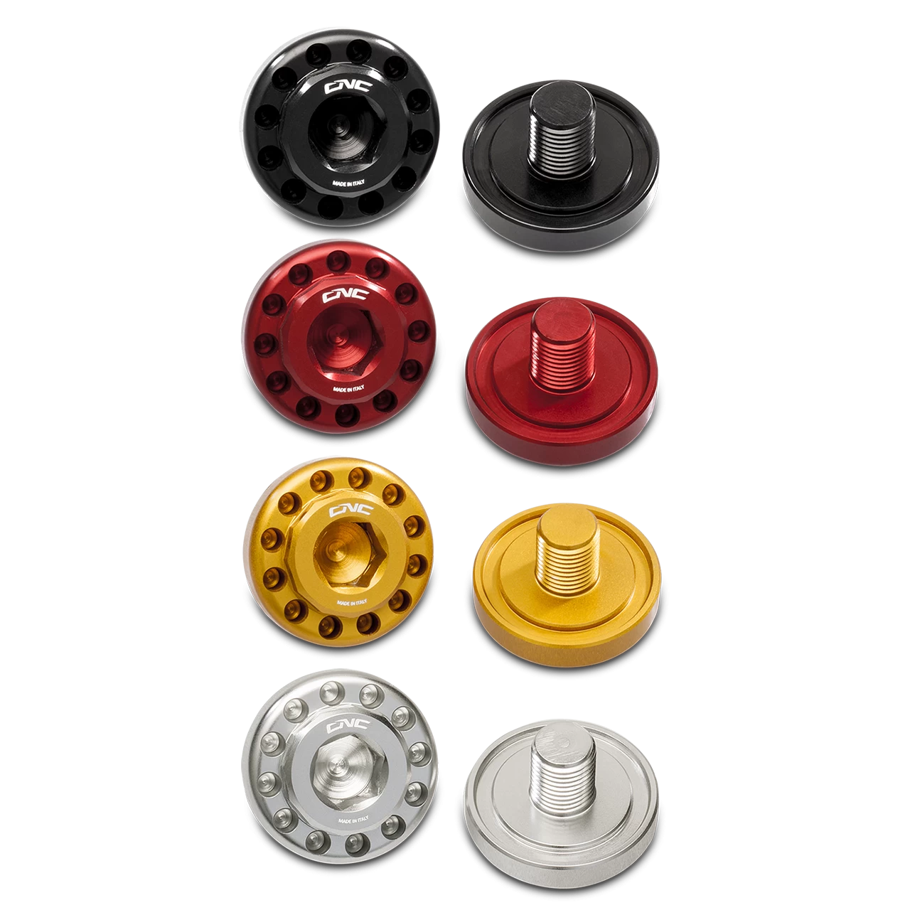 The CNC Racing Central bolt kit for OEM rearsets is machined from light alloy billet and then given a coloured anodized surface finish which delivers quality and lasting service life. The installation is straight forward, no modifications are required, and it simply replaces the OEM bolt. This kit is composed of 2 bolts.