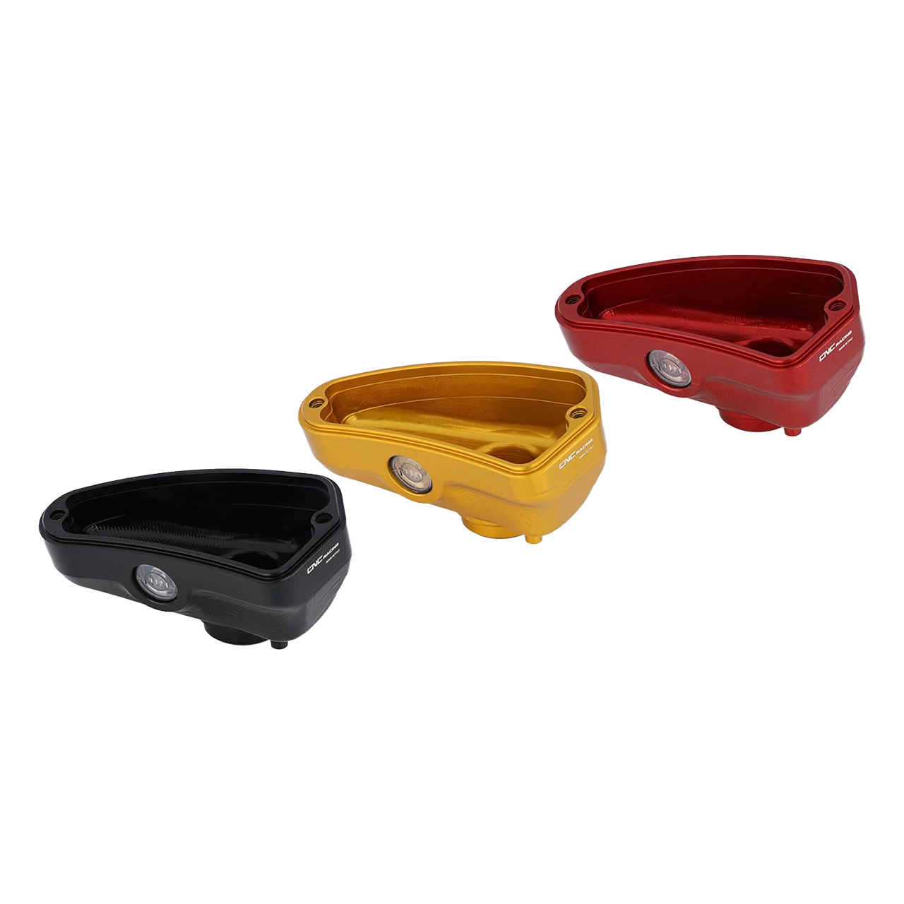 Front brake fluid reservoir with level window, CNC machined from light alloy billet and then given a coloured anodized surface finish, which, in addition to coming in a wide range of colours, delivers quality and lasting service life.