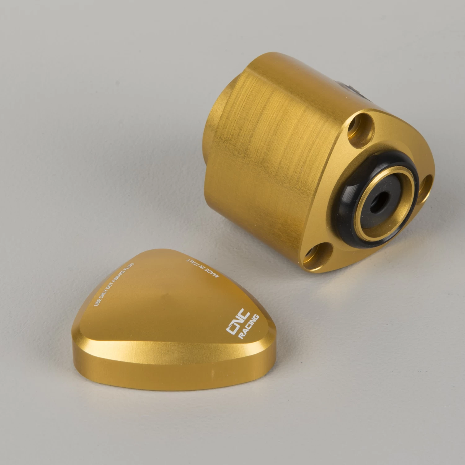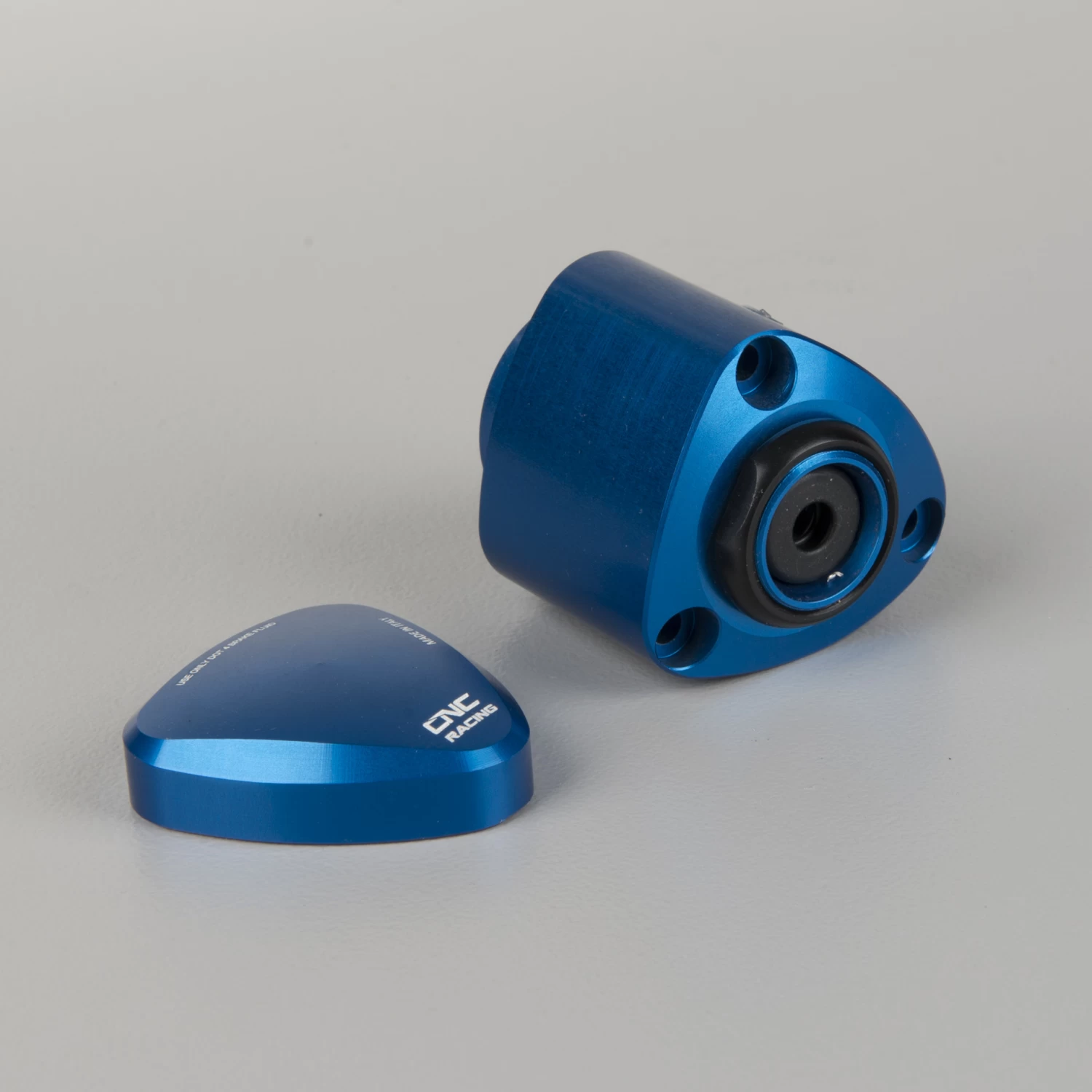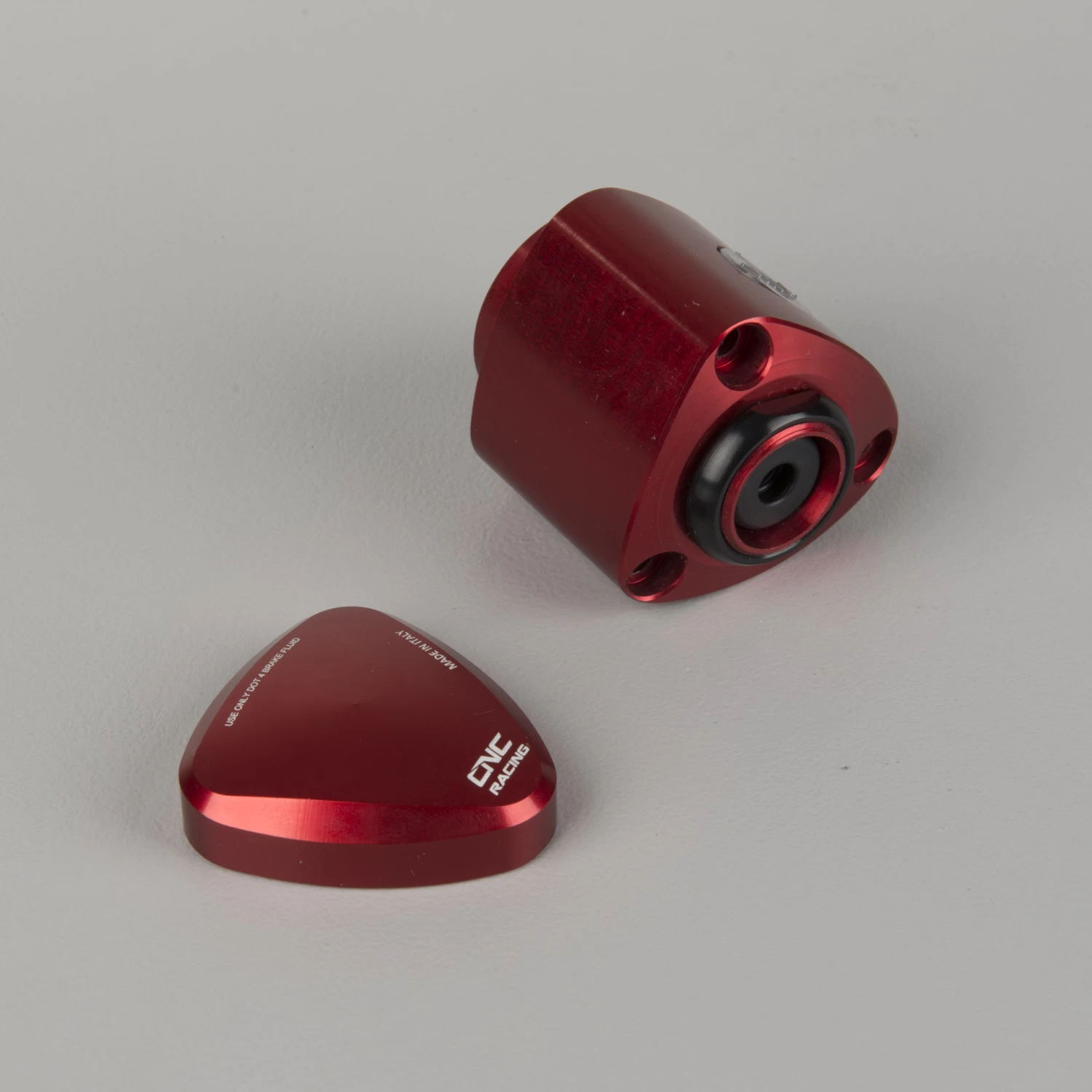 CNC milled brake fuel container made from a light billet metal and with a coloured anodised finish, which in addition to a wide range of colours, provides great quality and lasting durability.