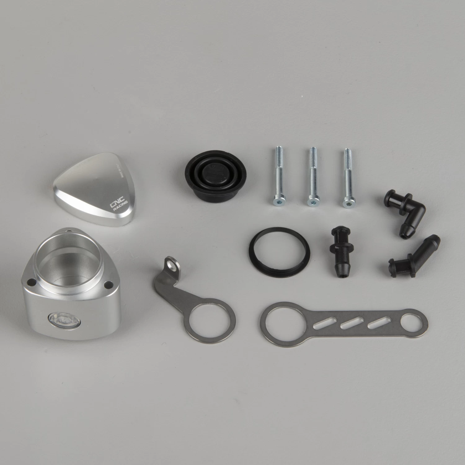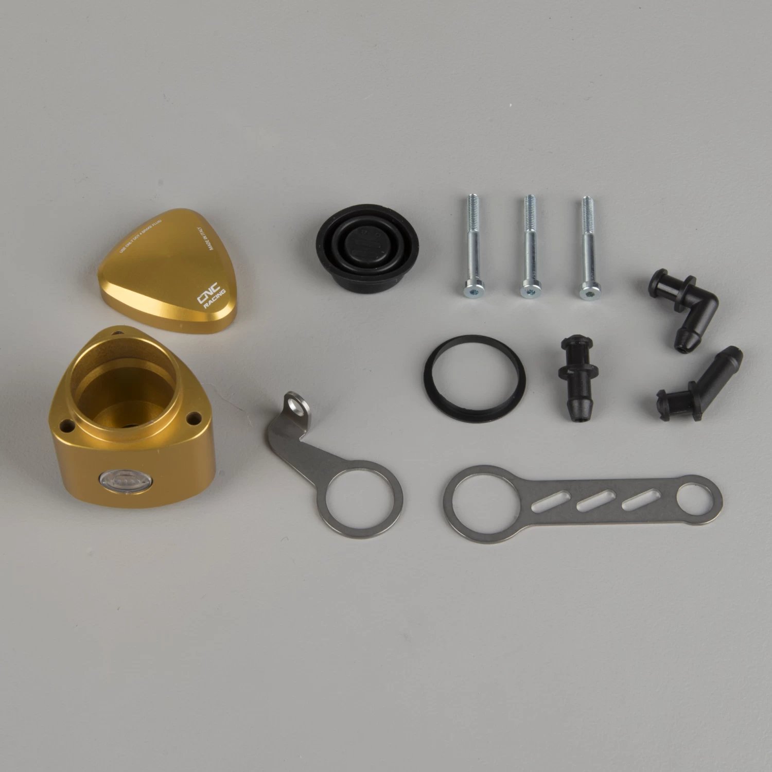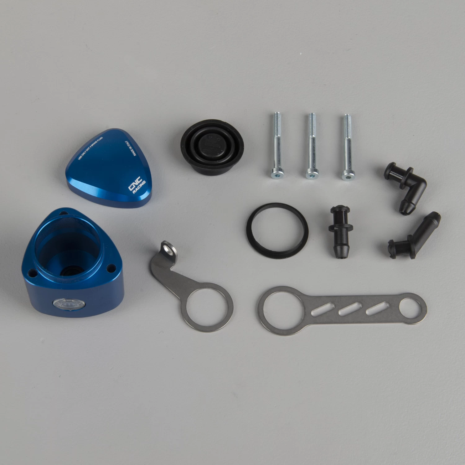 CNC milled brake fuel container made from a light billet metal and with a coloured anodised finish, which in addition to a wide range of colours, provides great quality and lasting durability.