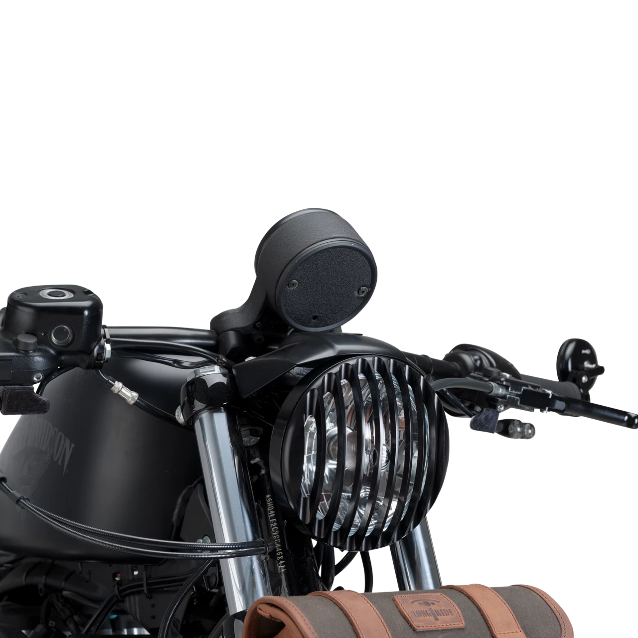 Customize to the max and protect the headlight of your Harley Davidson Sportster, or another model from the American brand, with this headlight protector composed of 8 grids. The protector measures 15.5cm in diameter and is made of billet aluminium.