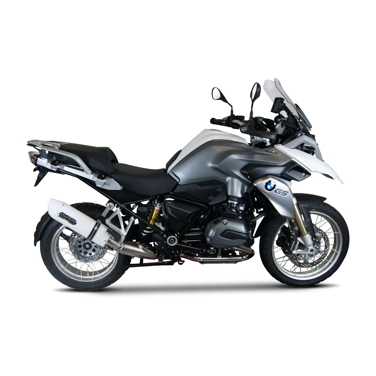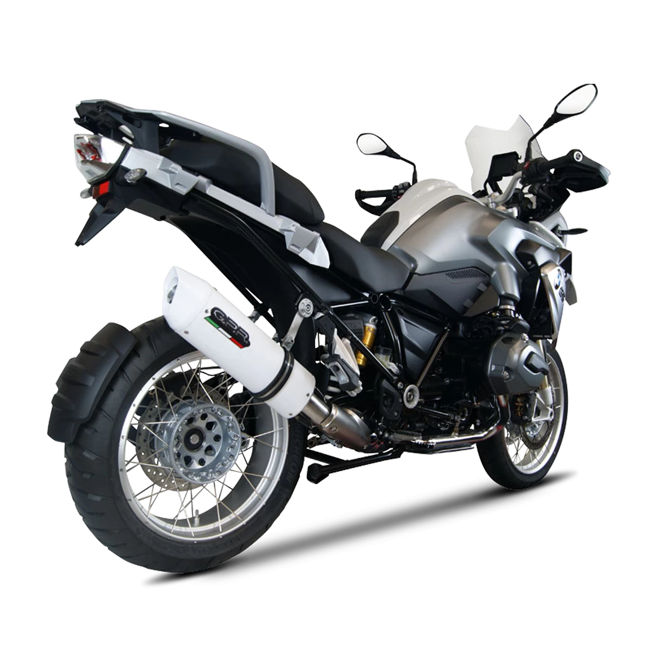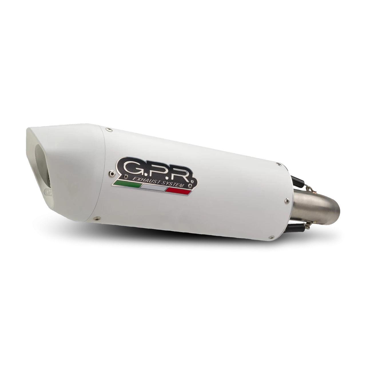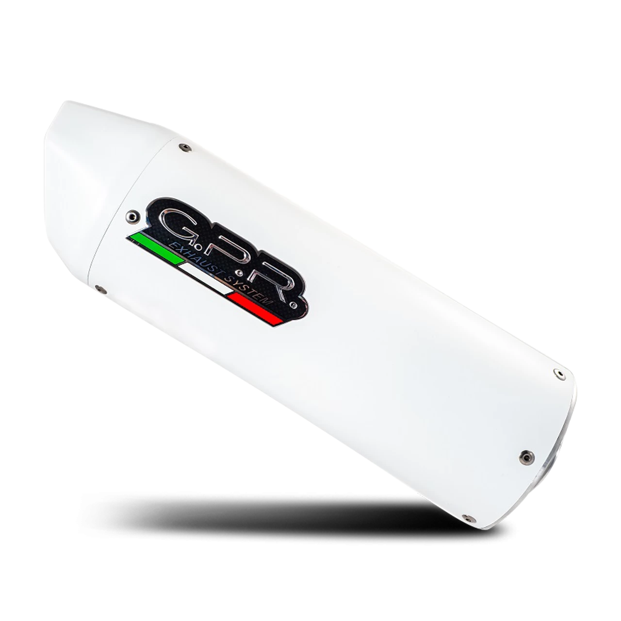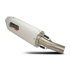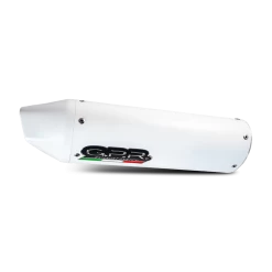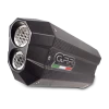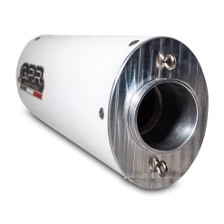 ALBUS silencer series, made with aluminium body and Avional caps obtained by CNC machining, painted with ceramic treatment for high temperatures, elliptical shape 90×120. Original G.P.R. product, developed thanks to a long experience in World Motorbikes Championship, propose an innovative design, performance increase, relevant weight saving and a motorbike sound tone improvement.