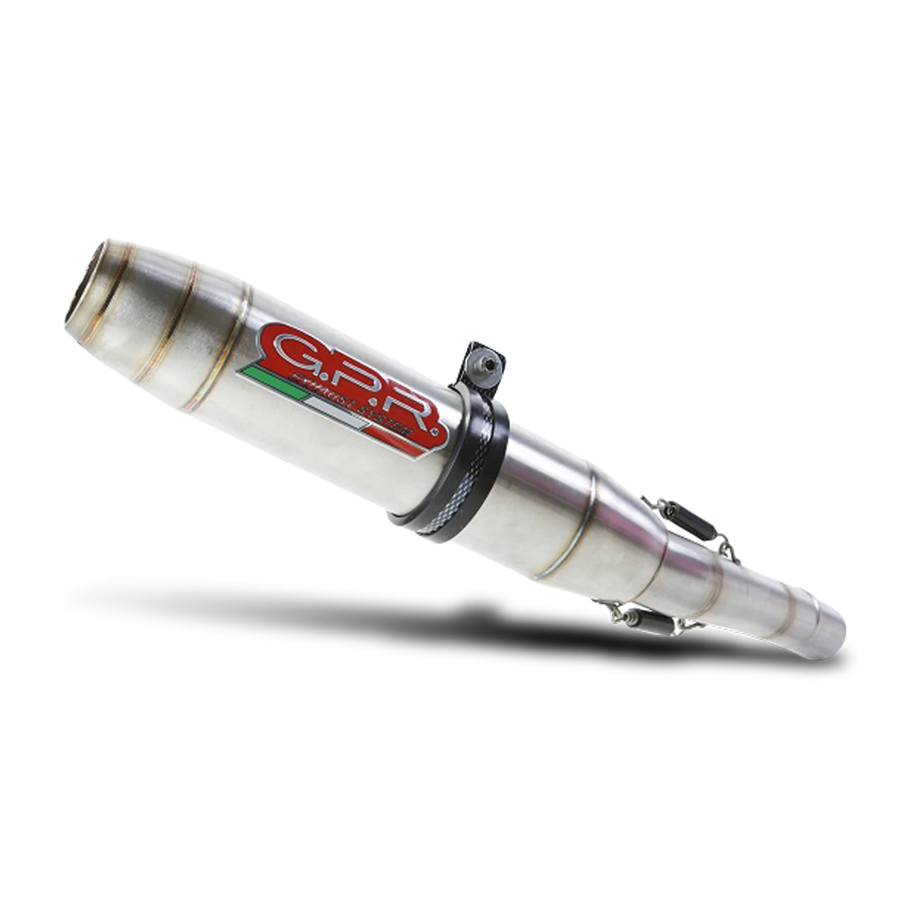Deeptone Inox silencer series, made of hand-brushed 304 stainless steel, with amazing TIG weldings on the cone, round shape with a diameter of 80mm.. Original G.P.R. product, developed thanks to a long experience in World Motorbikes Championship, propose an innovative design, performance increase, relevant weight saving and a motorbike sound tone improvement.
