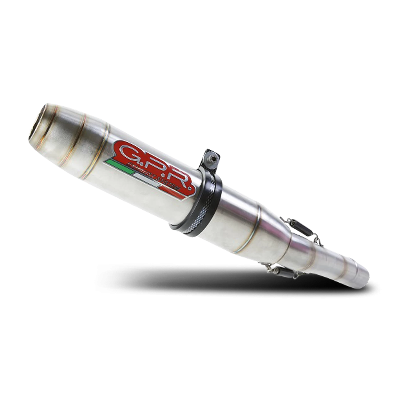 Deeptone Inox silencer series, made of hand-brushed 304 stainless steel, with amazing TIG weldings on the cone, round shape with a diameter of 80mm.. Original G.P.R. product, developed thanks to a long experience in World Motorbikes Championship, propose an innovative design, performance increase, relevant weight saving and a motorbike sound tone improvement.