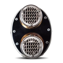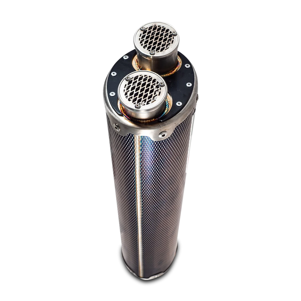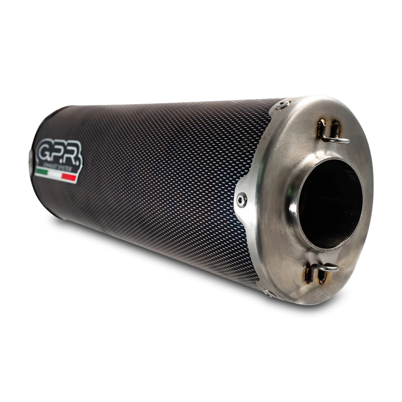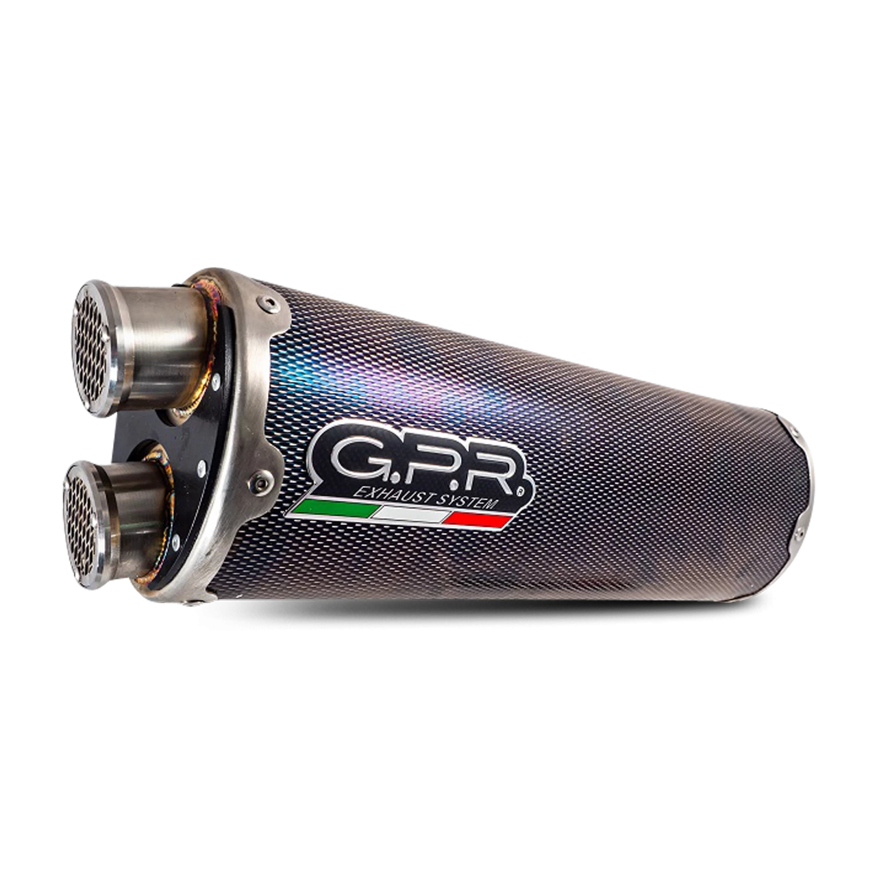 DUAL POPPY, made with 304 stainless steel CARBON look body with double outlet, elliptical shape 100×130, dedicated to enduro and grand touring bikes.. Original G.P.R. product, developed thanks to a long experience in World Motorbikes Championship, propose an innovative design, performance increase, relevant weight saving and a motorbike sound tone improvement.