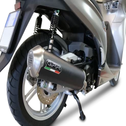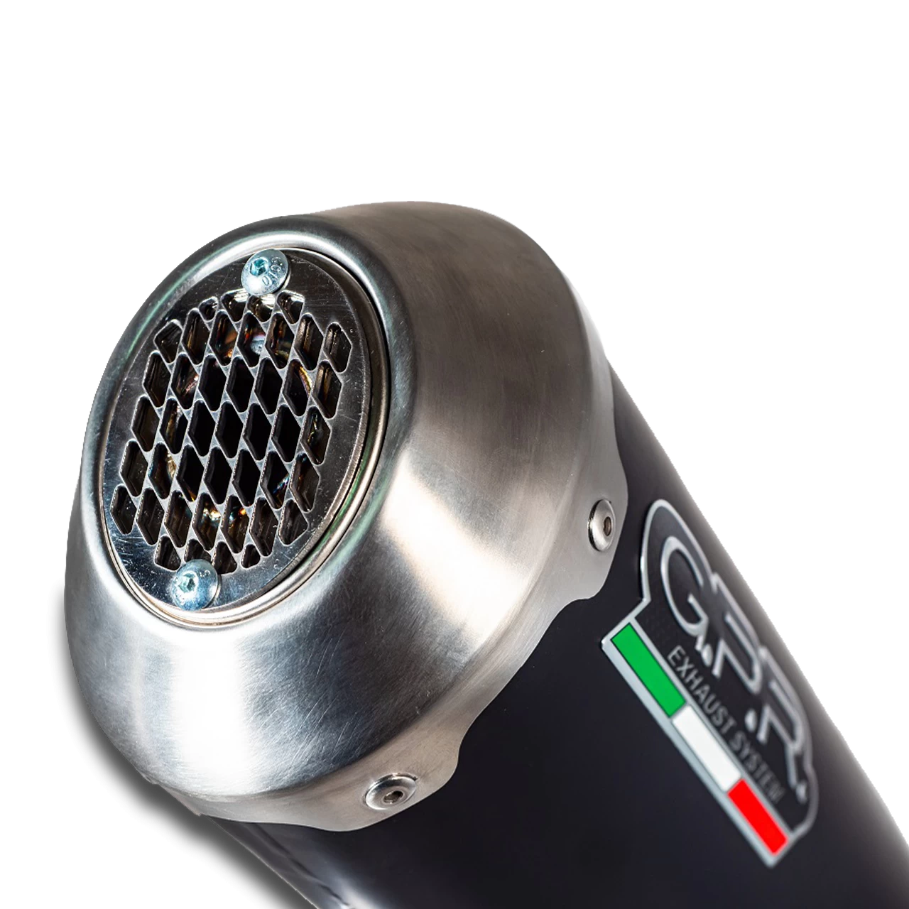 EVO4ROAD, made of 304 stainless steel with ceramic painting for high temperatures, oval shape diameter 90x120mm.. Original G.P.R. product, developed thanks to a long experience in World Motorbikes Championship, propose an innovative design, performance increase, relevant weight saving and a motorbike sound tone improvement.