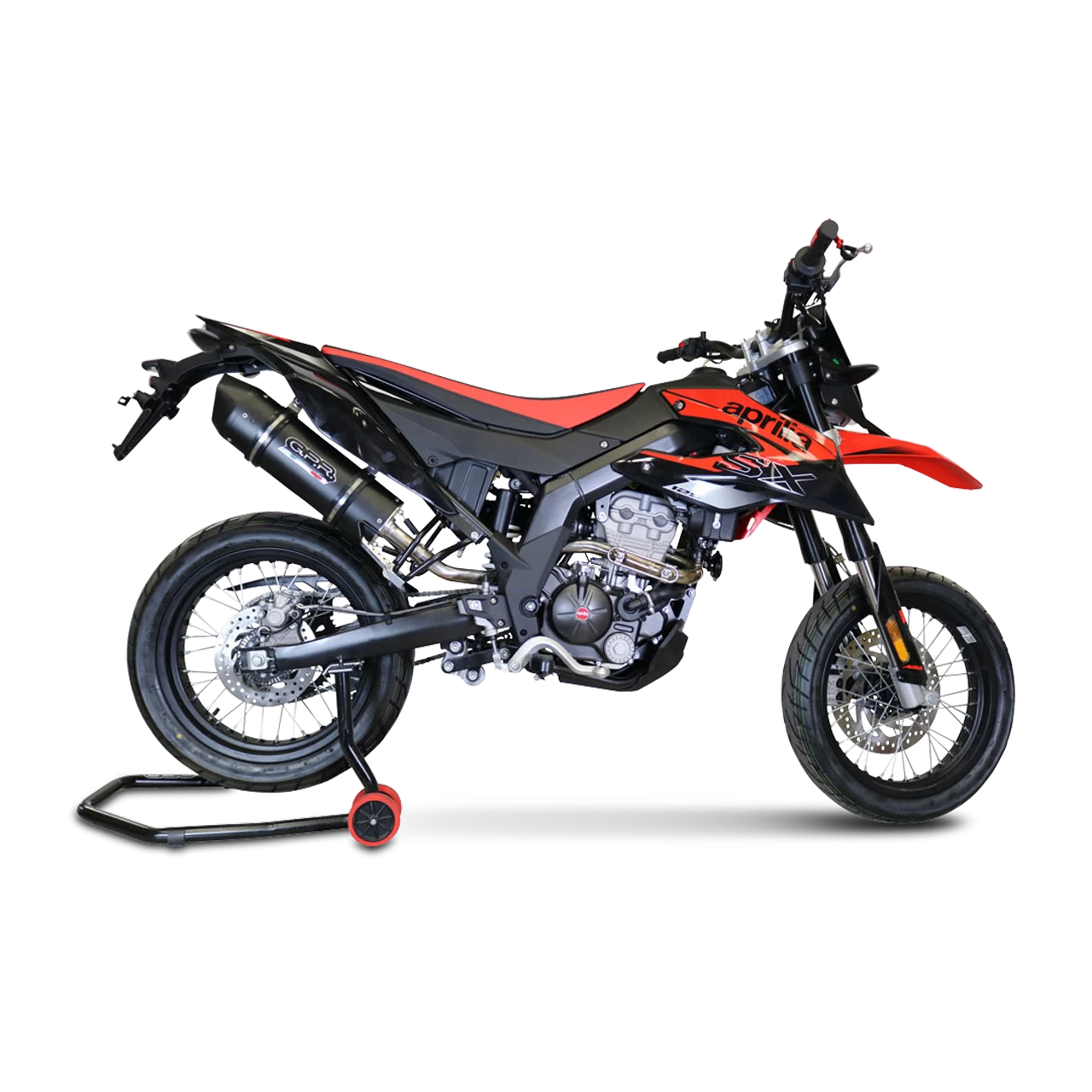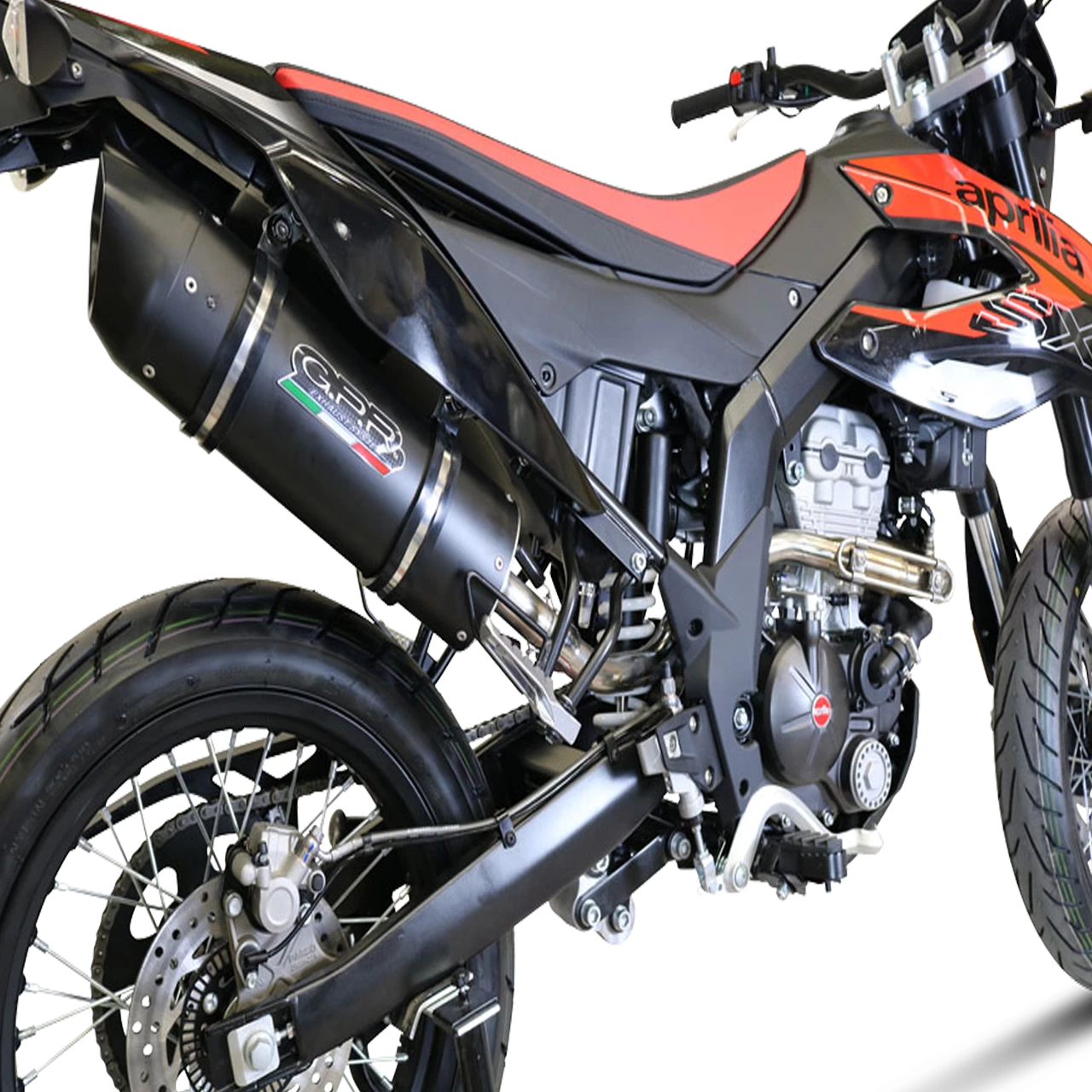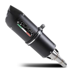 FURORE NERO silencer series, made with black aluminium body and Avional caps obtained by CNC machining, painted with ceramic treatment for high temperatures, elliptical shape 90×120. Original G.P.R. product, developed thanks to a long experience in World Motorbikes Championship, propose an innovative design, performance increase, relevant weight saving and a motorbike sound tone improvement.