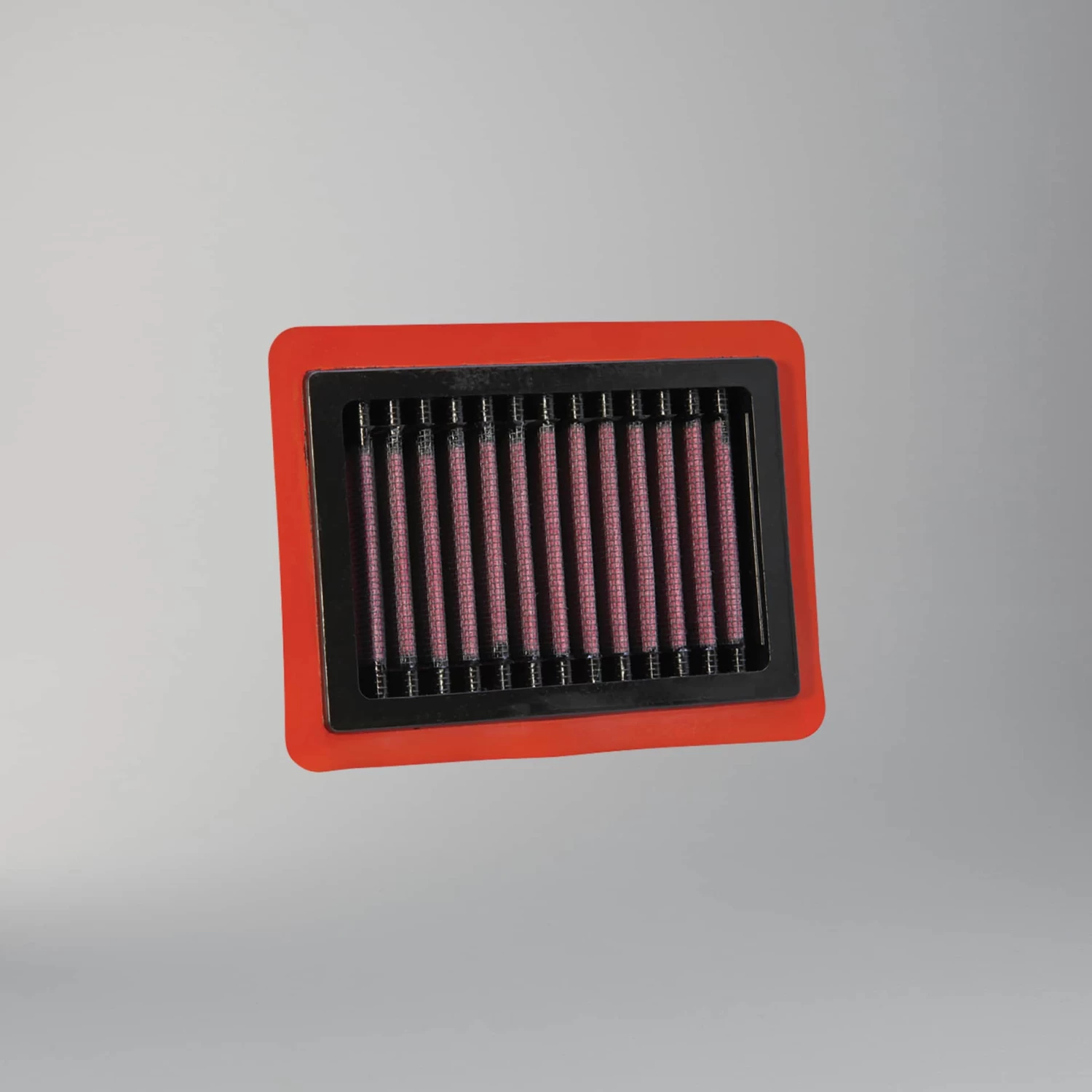 KN air filters consist of four to six sheets of cotton gauze layered between two sheets of aluminum wire mesh. This media is then pleated and oiled to enhance its filtering capabilities and overall performance.