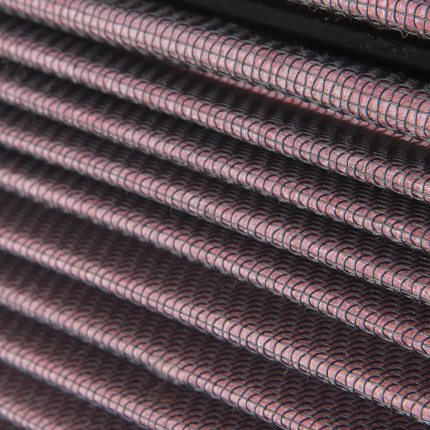KN air filters consist of four to six sheets of cotton gauze layered between two sheets of aluminum wire mesh. This media is then pleated and oiled to enhance its filtering capabilities and overall performance.