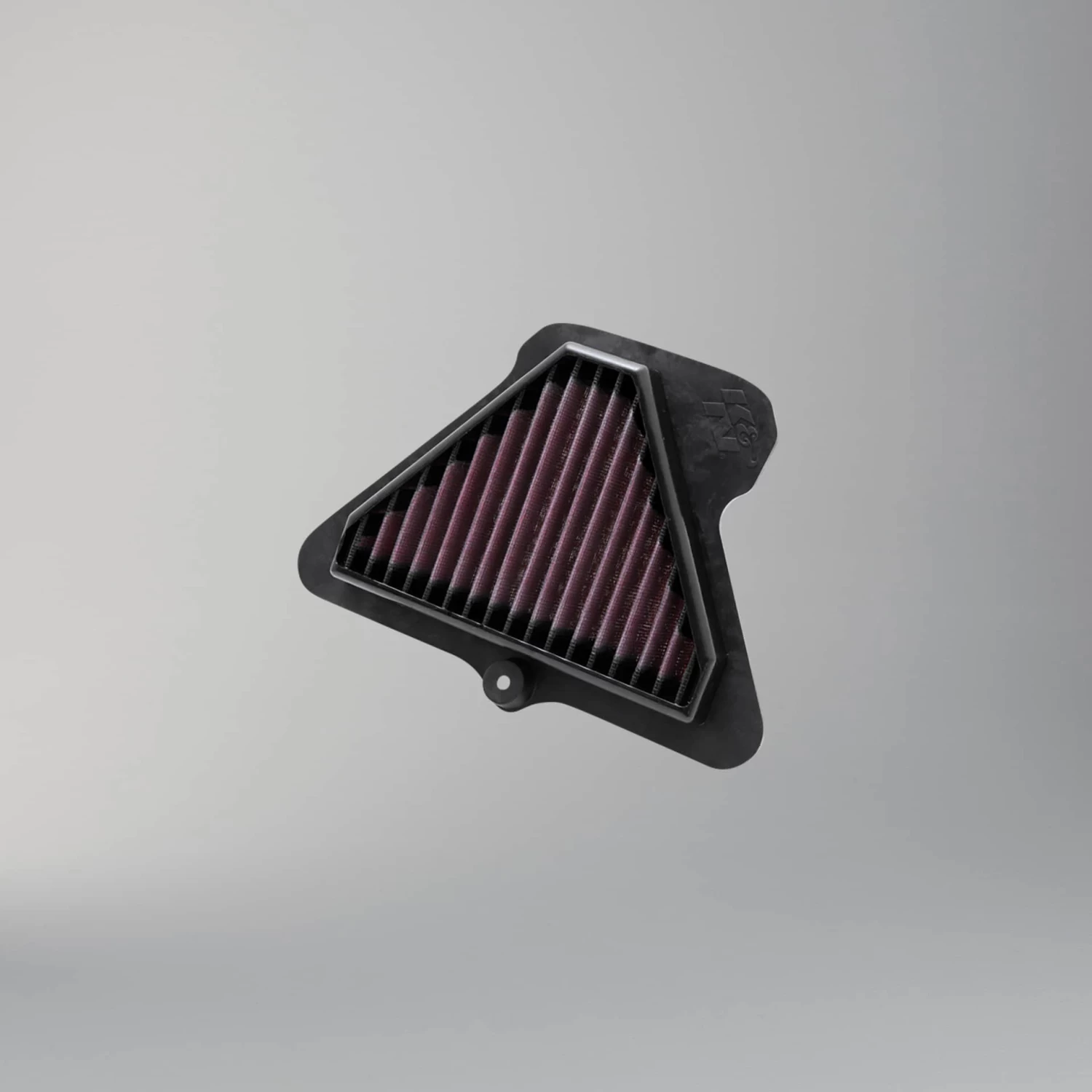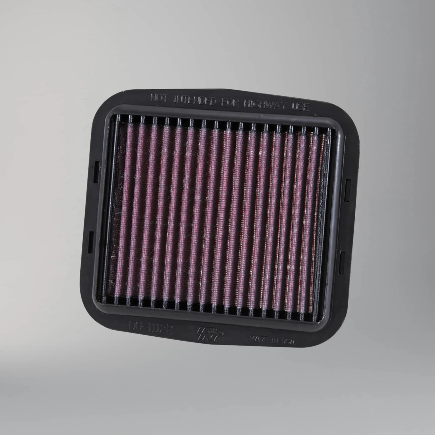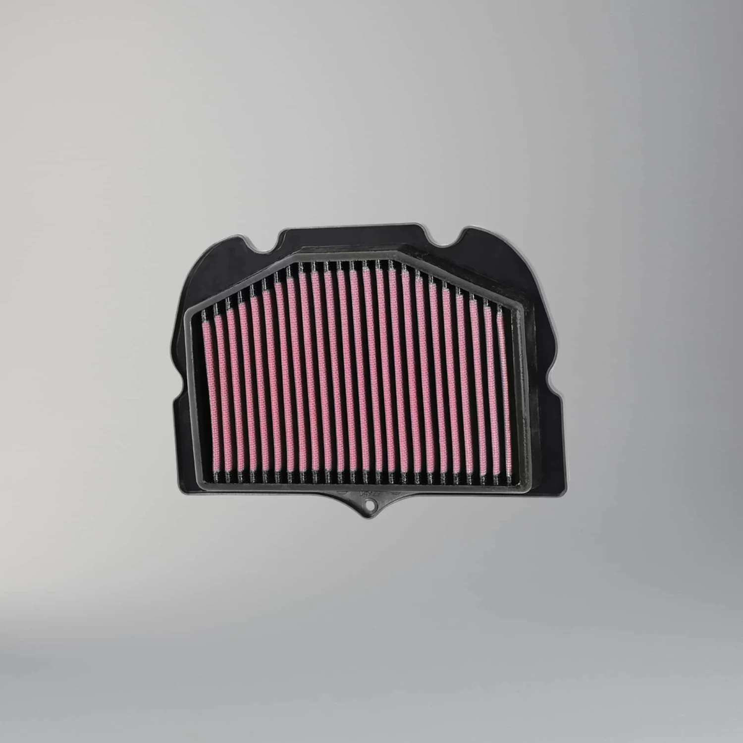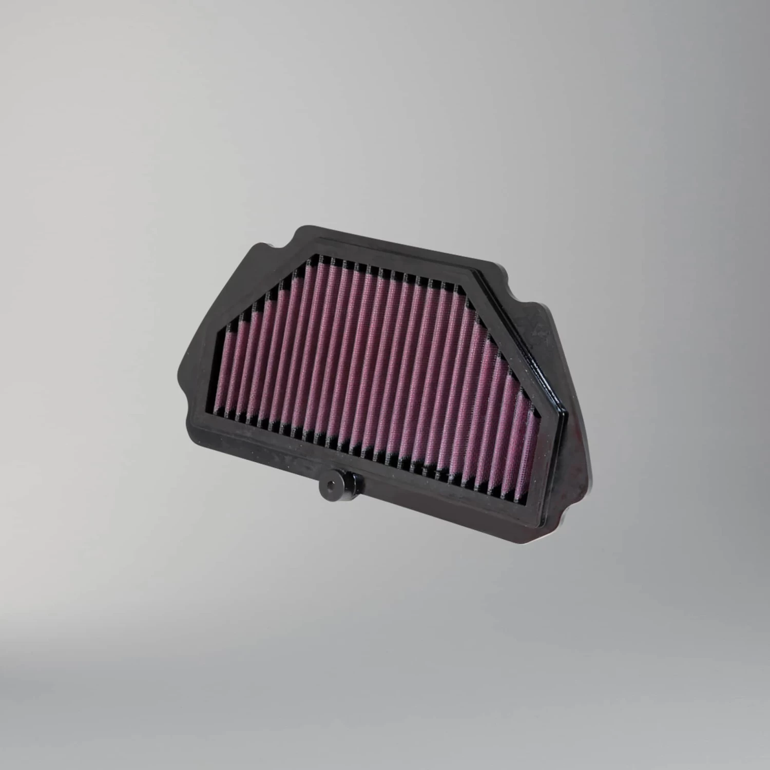 A K&N air filter consists of 4 to 6 sheets of gauze layered between a double layer of aluminium mesh. The air filter is then pleated and oiled to improve its filtering performance. These are washable, reusable, and built to extend the life of your motorcycle engine.