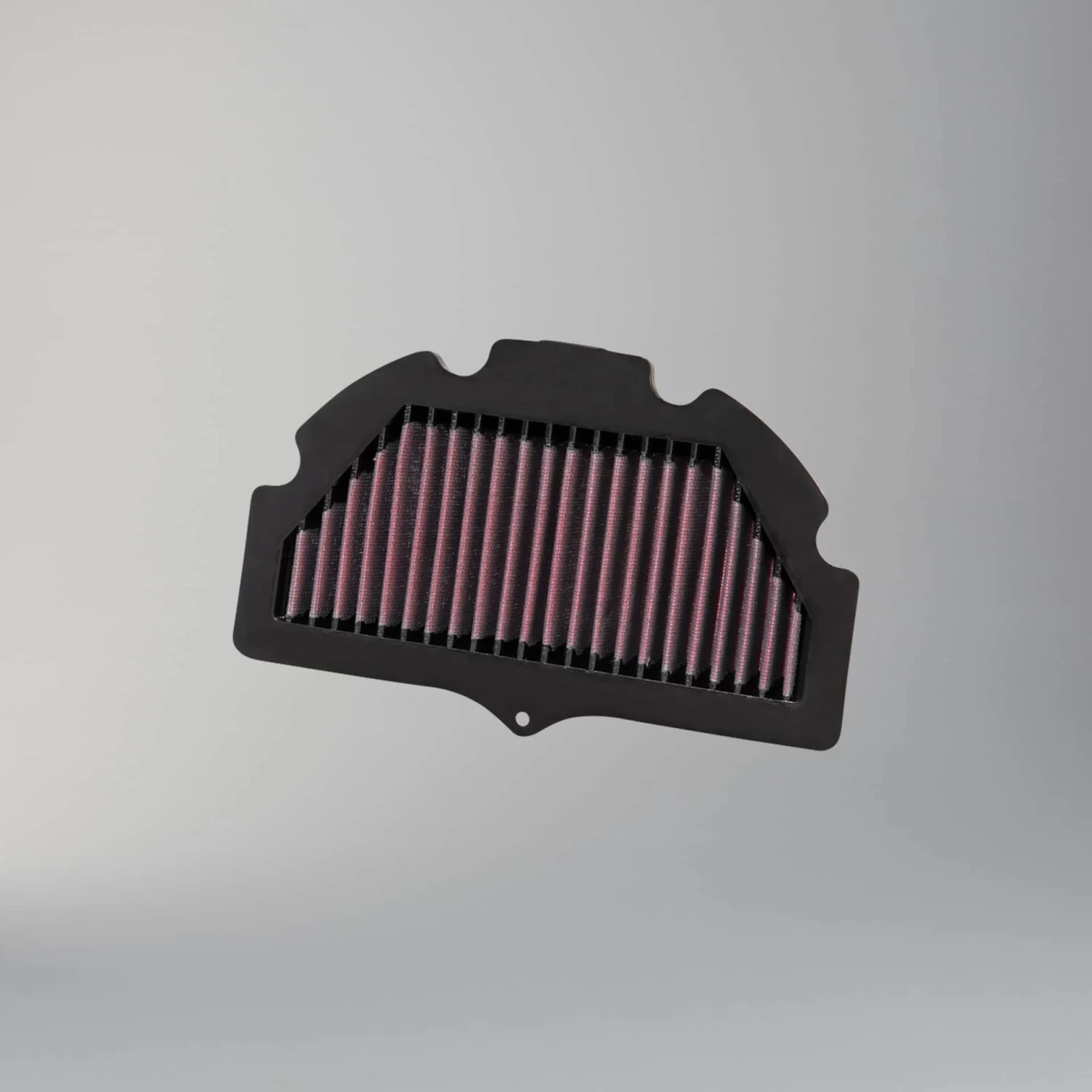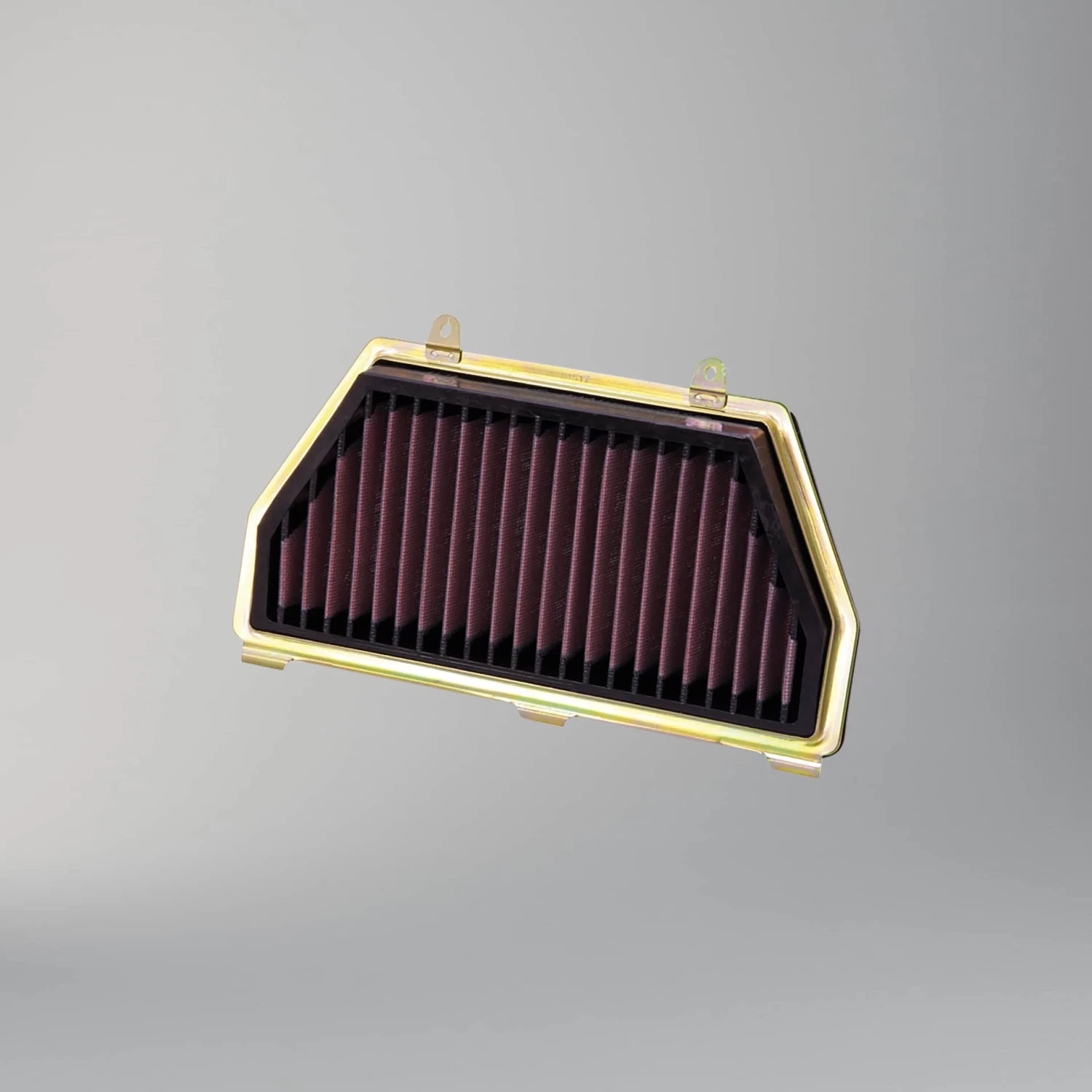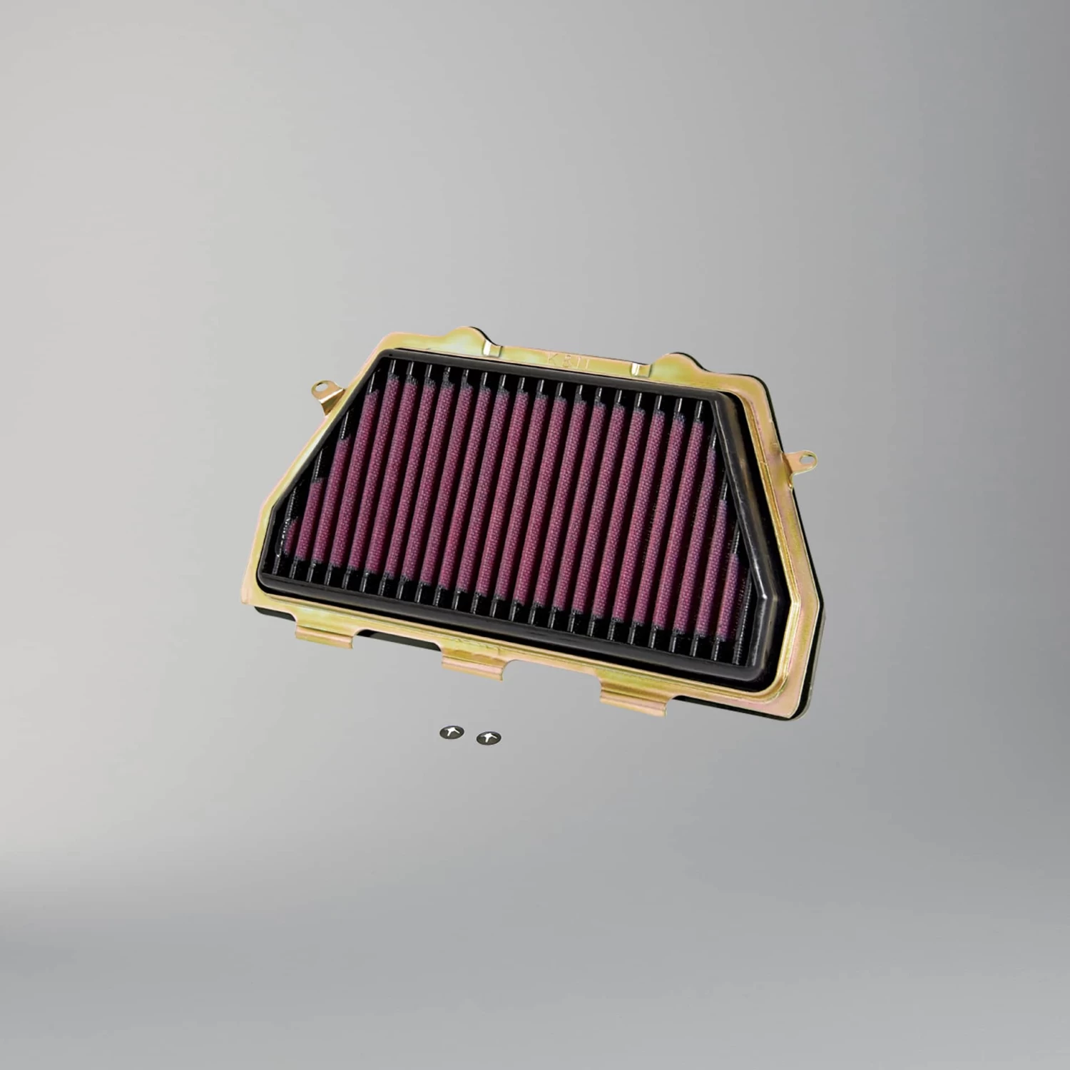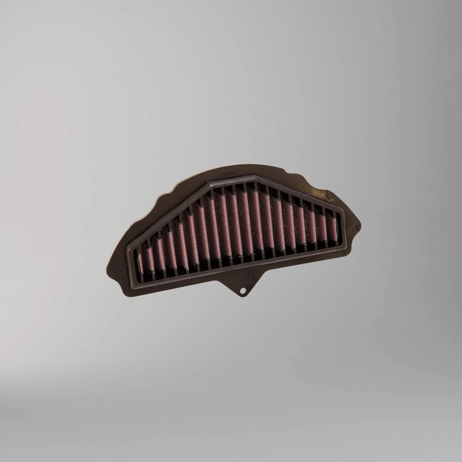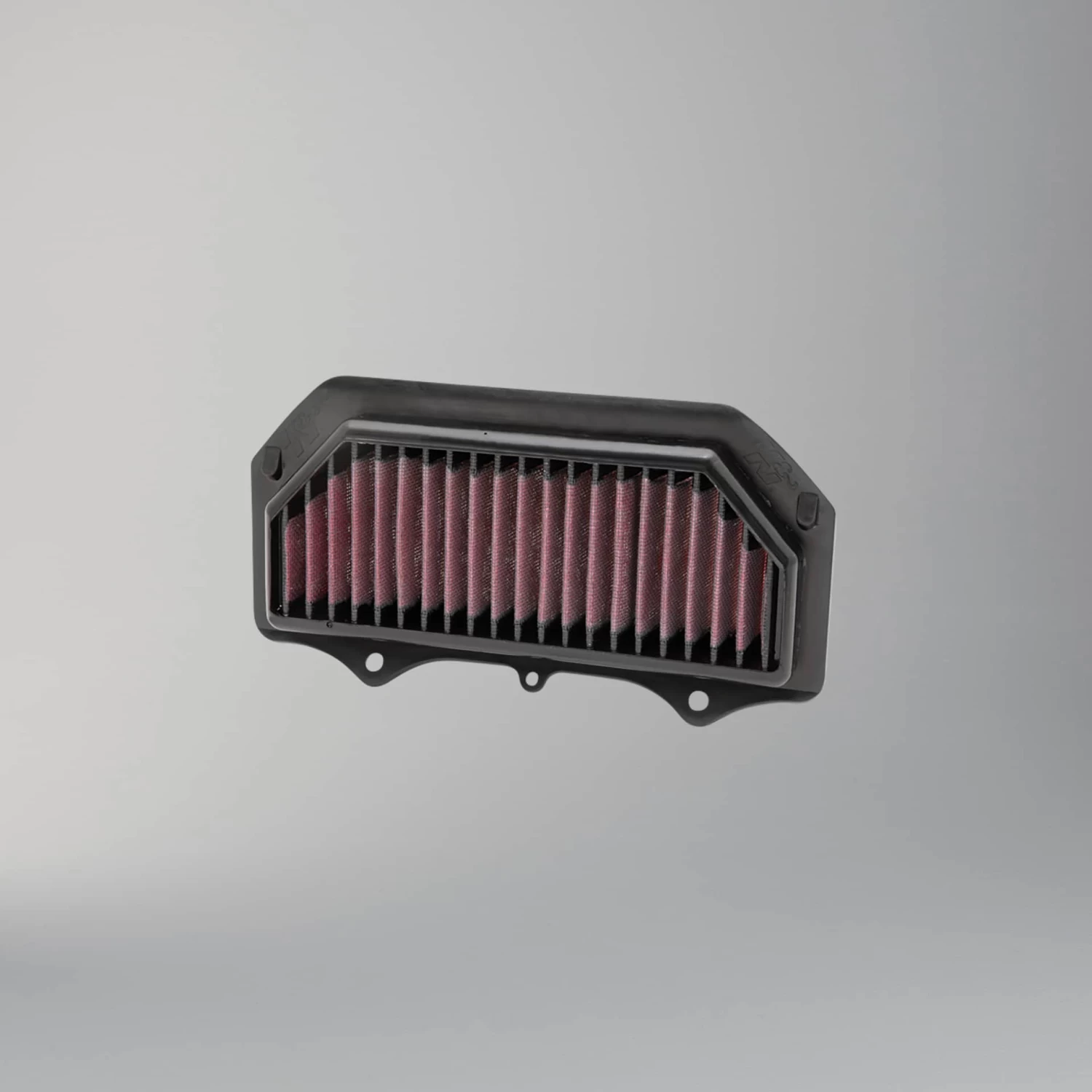 A K&N air filter consists of 4 to 6 sheets of gauze layered between a double layer of aluminium mesh. The air filter is then pleated and oiled to improve its filtering performance. These are washable, reusable, and built to extend the life of your motorcycle engine.