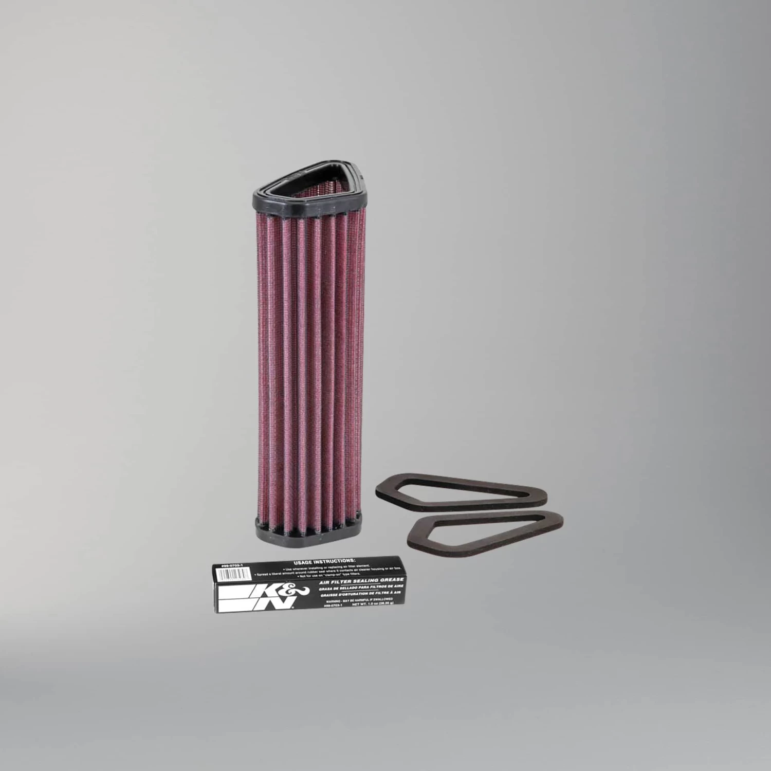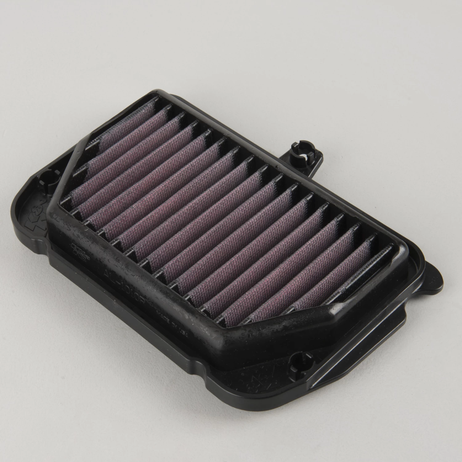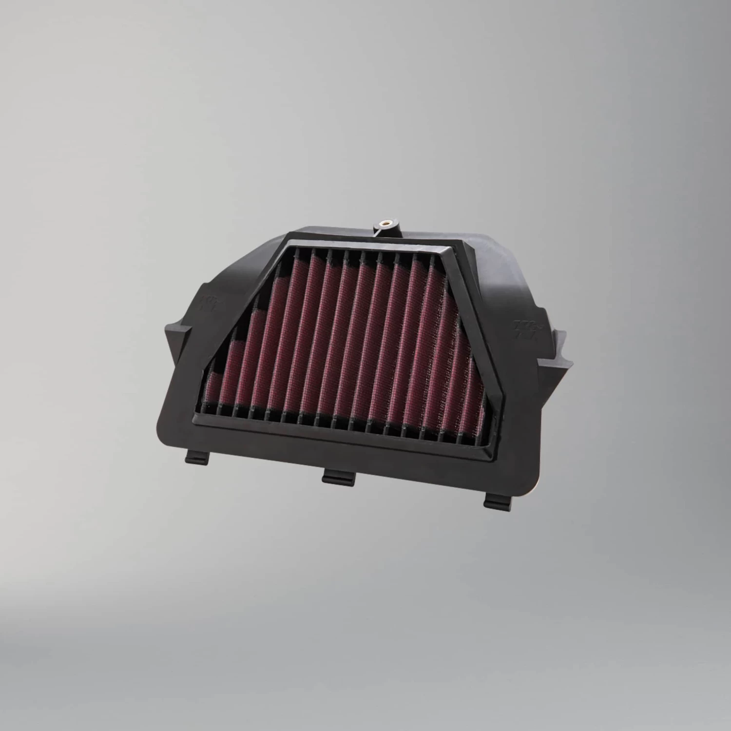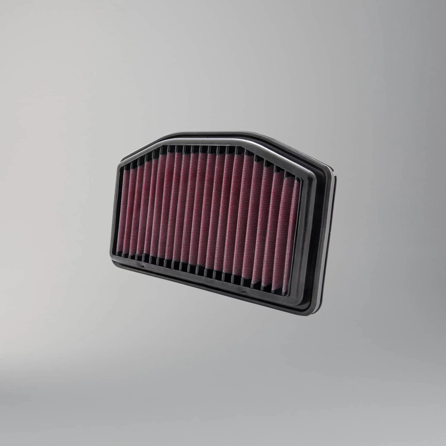 A K&N air filter consists of 4 to 6 sheets of gauze layered between a double layer of aluminium mesh. The air filter is then pleated and oiled to improve its filtering performance. These are washable, reusable, and built to extend the life of your motorcycle engine.