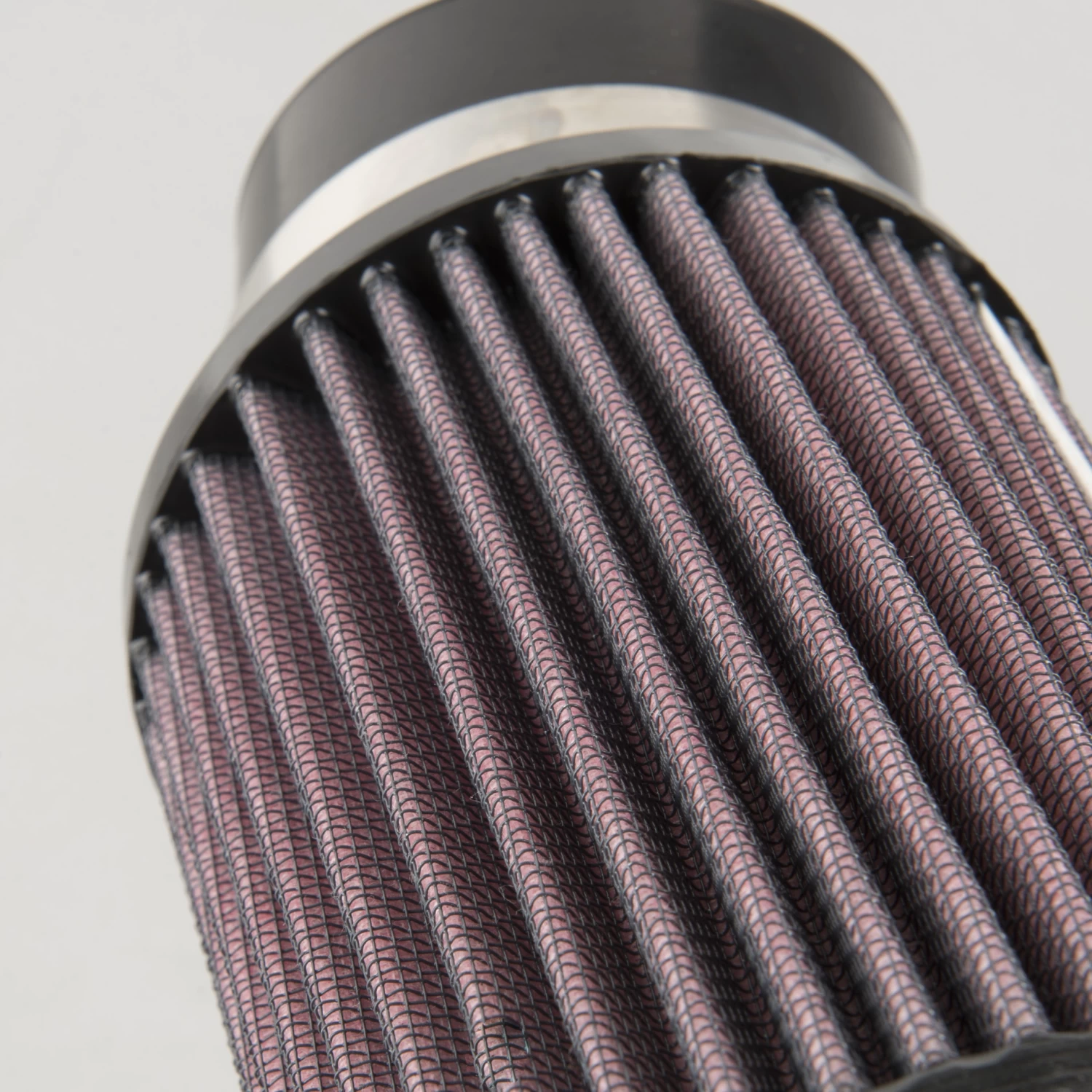 A K&N air filter consists of 4 to 6 sheets of gauze layered between a double layer of aluminium mesh. The air filter is then pleated and oiled to improve its filtering performance. These are washable, reusable, and built to extend the life of your motorcycle engine.