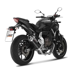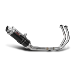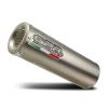 Manufactured implementing the technical solutions of competition models, the GP exhaust is a round short silencer with widened outlet and removable dB-killer. This exhaust features a central body made of black stainless steel “Black Moon” effect, obtained with a special colouring process that provides a more aggressive look to the silencer.