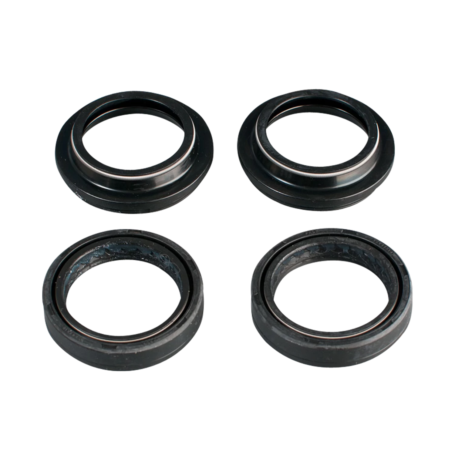 A complete kit for a front fork. “ProX” fork seals and wipers are sold in sets of two seals and two wipers for motorcycle forks.