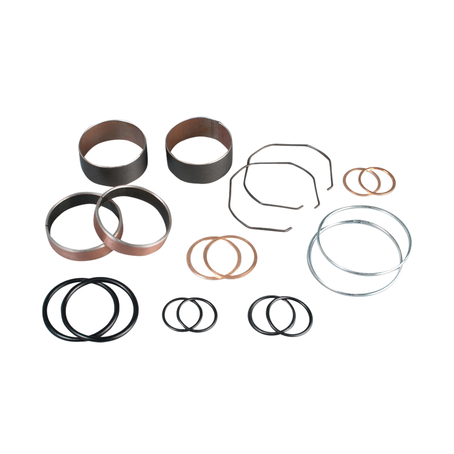 High quality fork rebuild kit from the brand “ProX” that contains both upper and lower Teflon bushings, copper washers, fork seal snap rings and o-rings.
