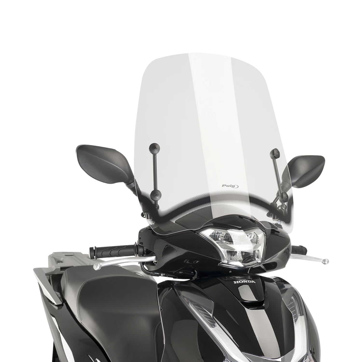 This is the latest evolution of Puig’s very first model and also one of their bestsellers. Designed for scooters and city riders, this windshield improves aerodynamics and protects the rider from bad weather, exhaust fumes, insects and debris. Made of 3 mm of high-quality PMMA and fast and easy to mount onto your bike (instructions included).