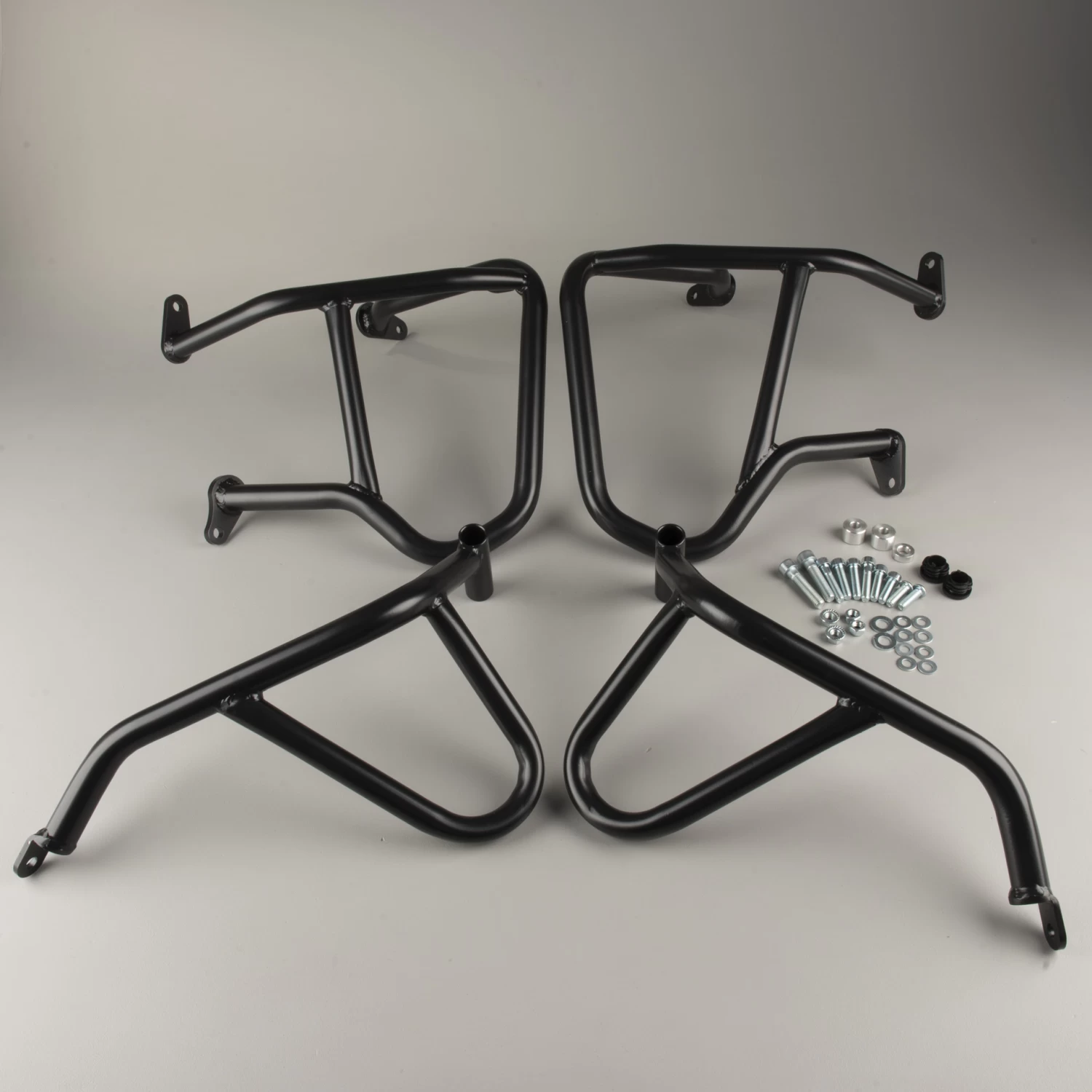 Made from steel pipes with a diameter of 18-28 mm, depending on the type of motorcycle you ride.