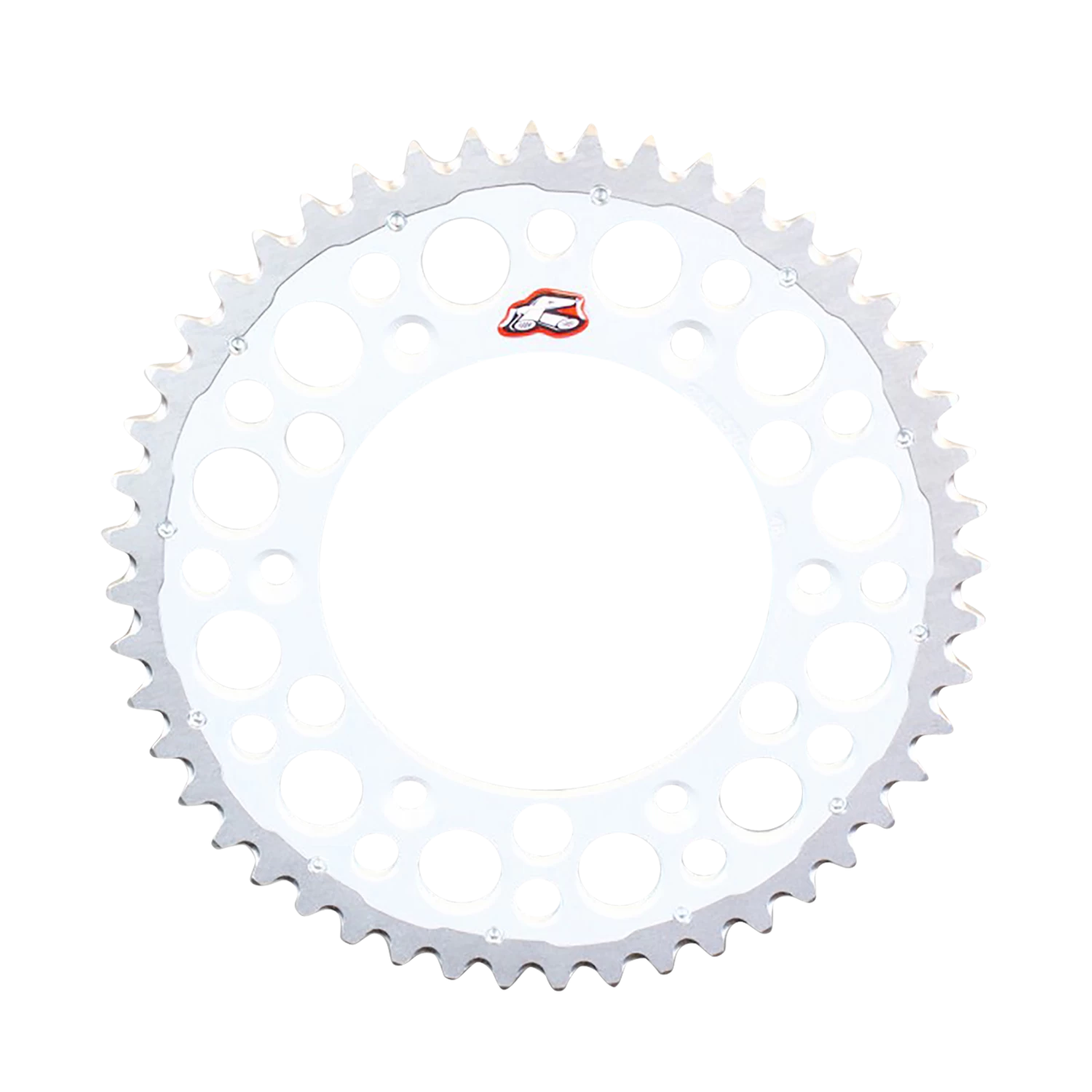 TwinRing® is a combination of Renthal’s ultra-light aluminum center with a nickel-coated outer steel ring. This makes the sprocket extremely durbable like steel yet also maintains a light weight like aluminum. TwinRing® has been extensively tested by David Knight and the KTM World Enduro Team.