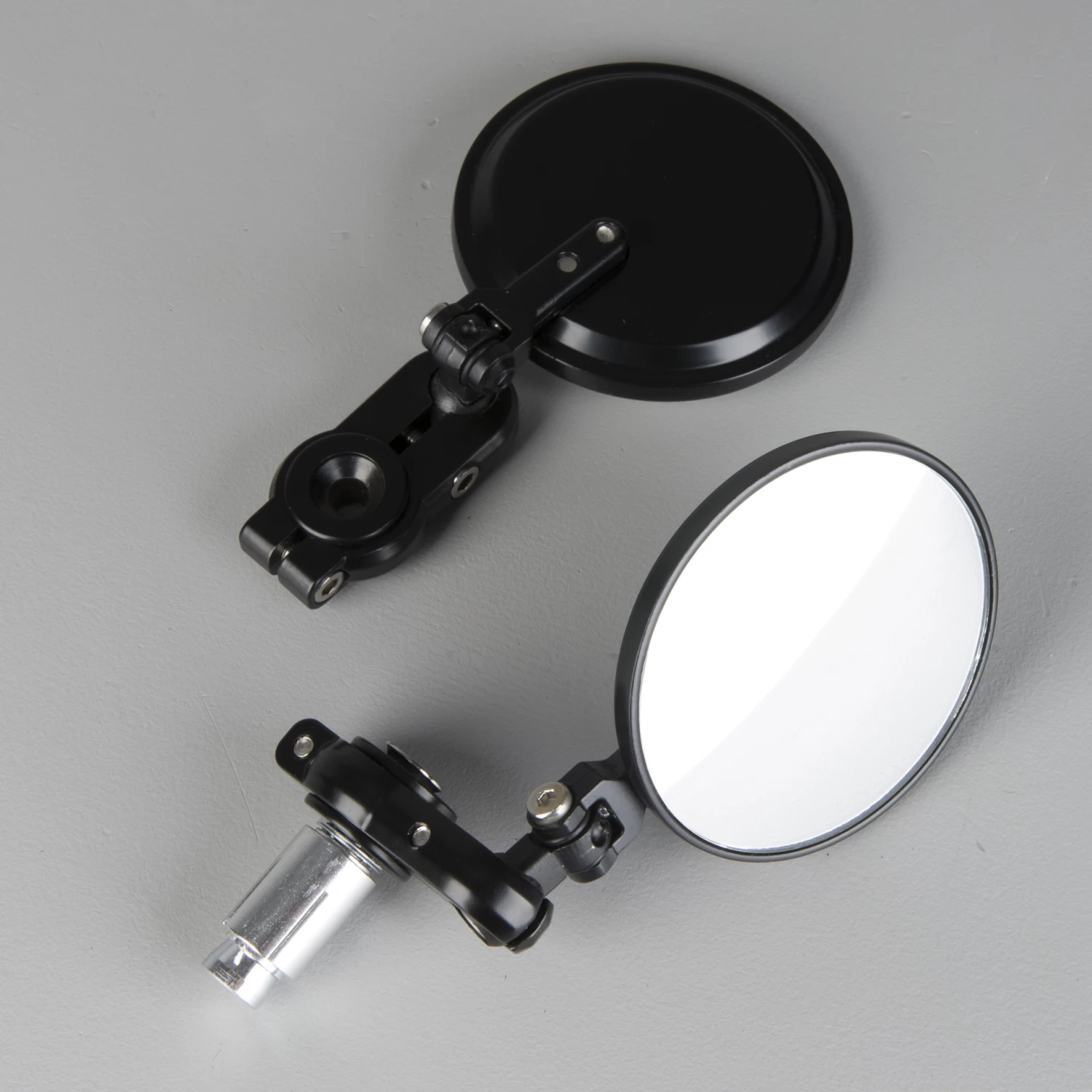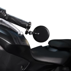 A pair of really sleek and cool looking handlebar mirrors with adjustable angle. The mirrors have a universal fastening that expands inside the handlebar, making them fit all bars with a standard diameter.