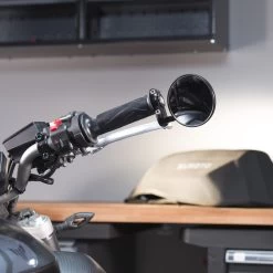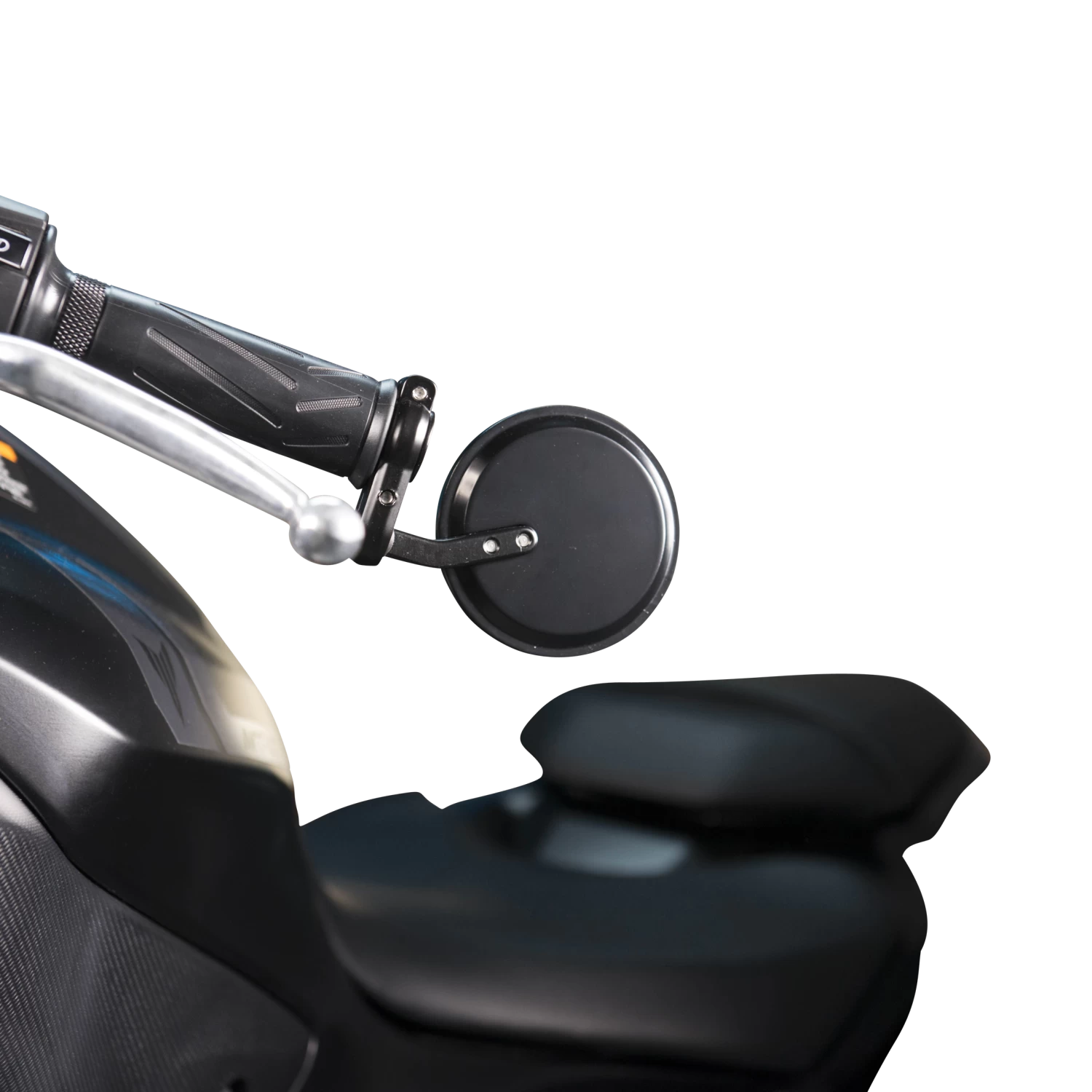 The advantages of having the rear-view mirrors on the control ends are many. It makes your bike look better and you get a wider field of vision behind you!