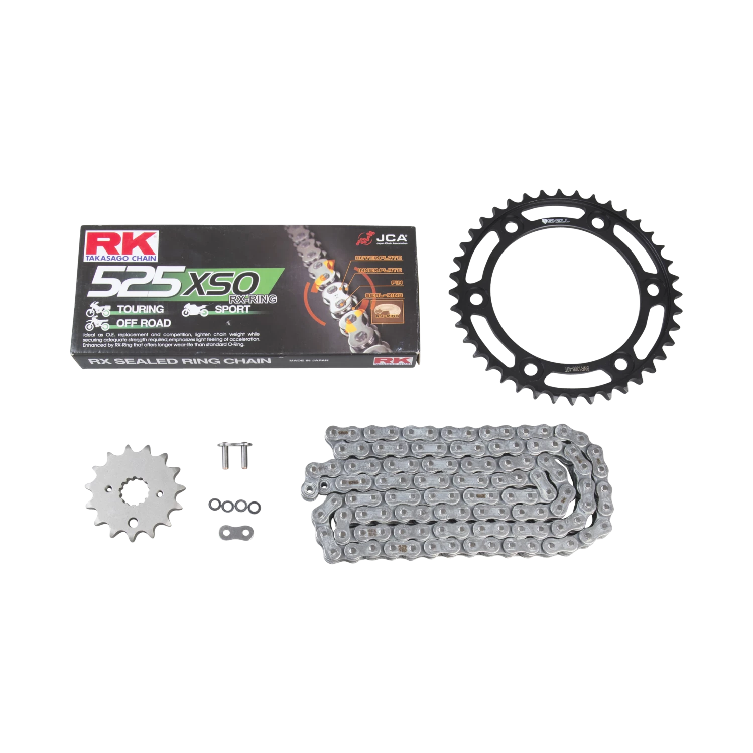 RK’s XSO chain is one of the best X-ring chains on the market! The X-shaped seals keep both the lubricant inside and block out dirt, dust and other things that can damage the links. This results is less friction, longer service life (up to 30% longer than an O-ring chain and 80% longer than a standard chain) and a chain that rolls more easily!