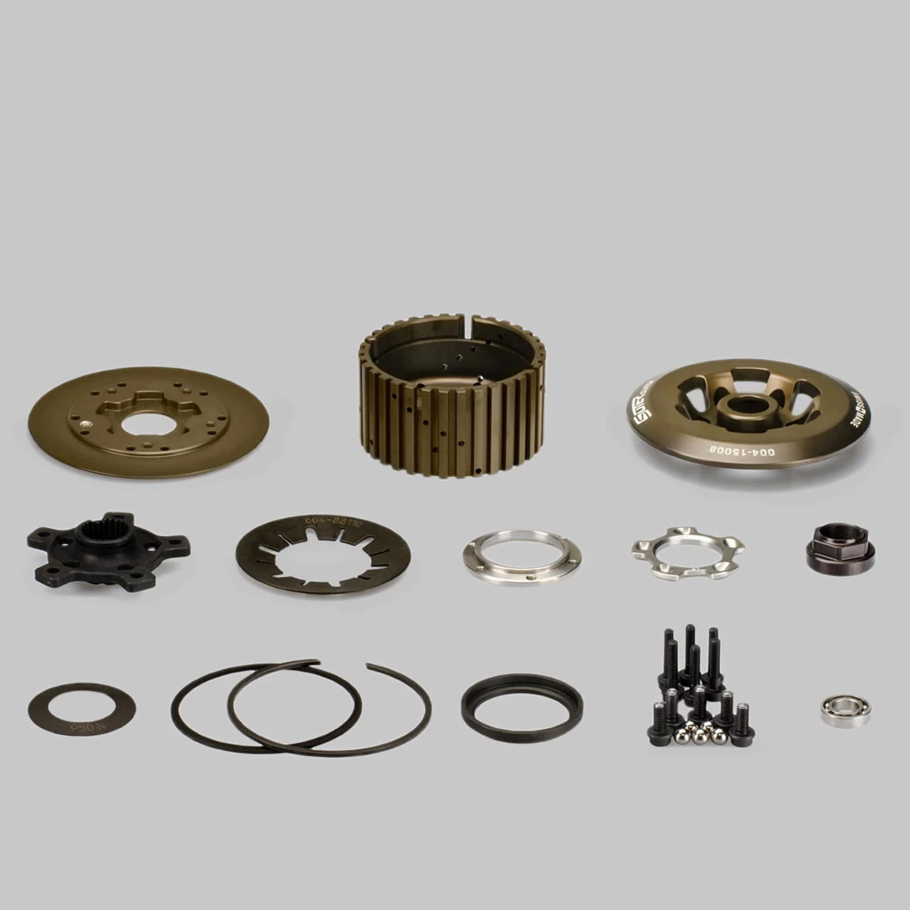 The anti-bouncing effect on these clutch plates can be adjusted to different riding styles; to tune your bike, for example, there are a number of harder head springs.