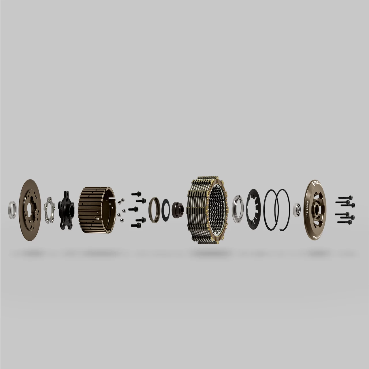 This clutch plates kit gives a refined response and ensures internal lubrication. The special colour of these clutch plates is the result of a hard-anodised Teflon coating that significantly minimises wear on friction surfaces.