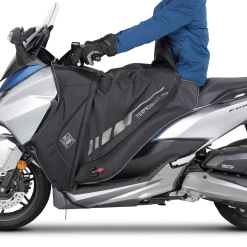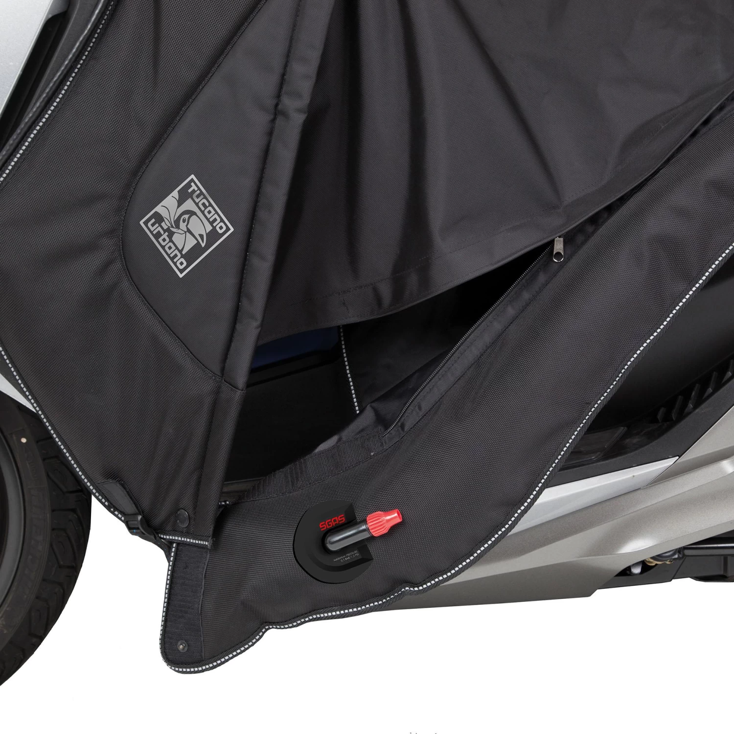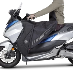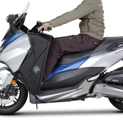 The Termoscud® Leg Cover was the first, and remains the only original leg cover that does not flap at high speeds, thanks to the patented S.G.A.S. system with inflatable chambers on the sides of the cover. The PRO version incorporates a new 4 Season System to extend the period of use. Thanks to the 4 Season System, during the summer months, you can remove the winter part in less than 10 seconds and leave the rigid part integrated in the scooter bodywork. This means the Termoscud® PRO Leg Cover can be fitted once and should never need to be removed again, so you can travel with peace of mind against the elements all year round.