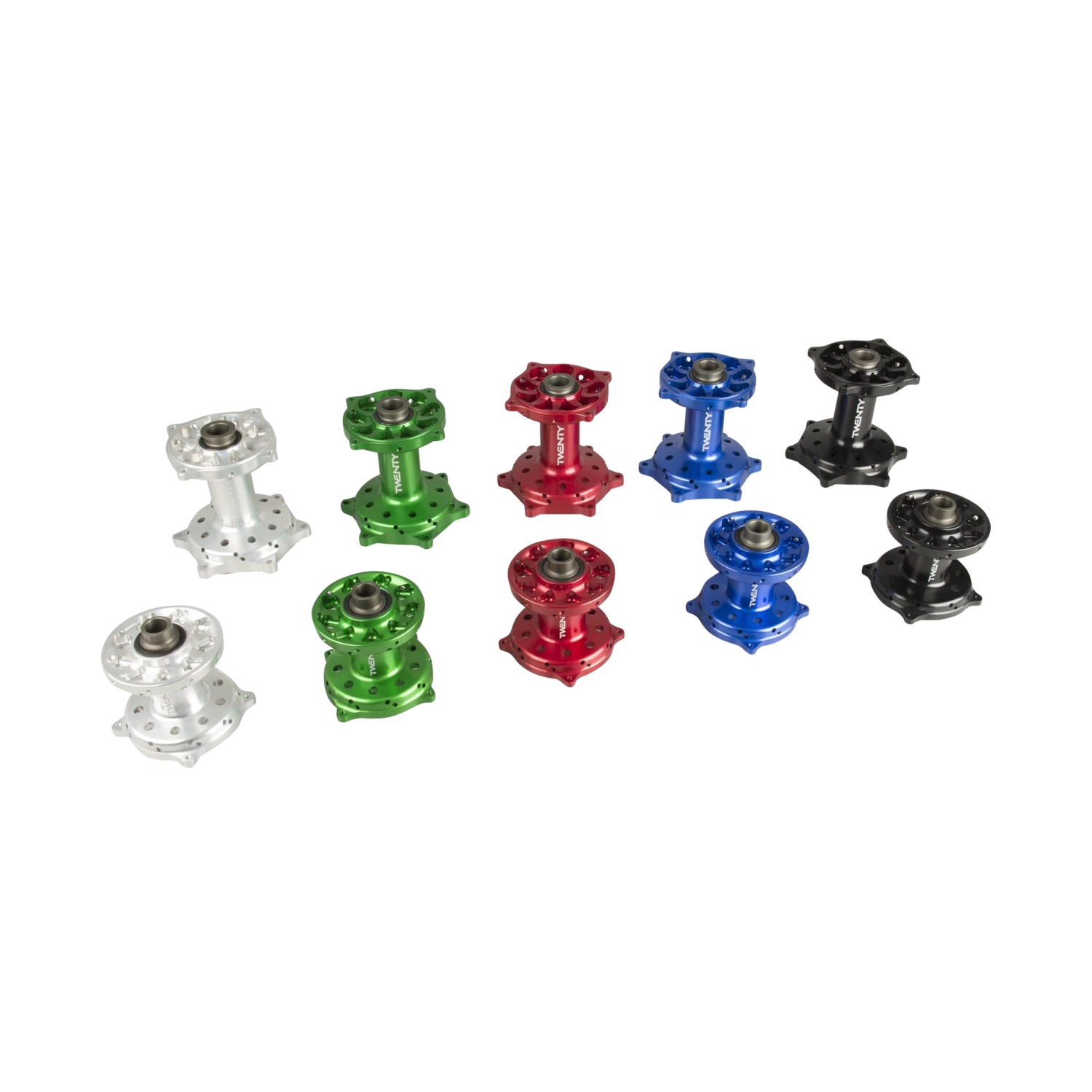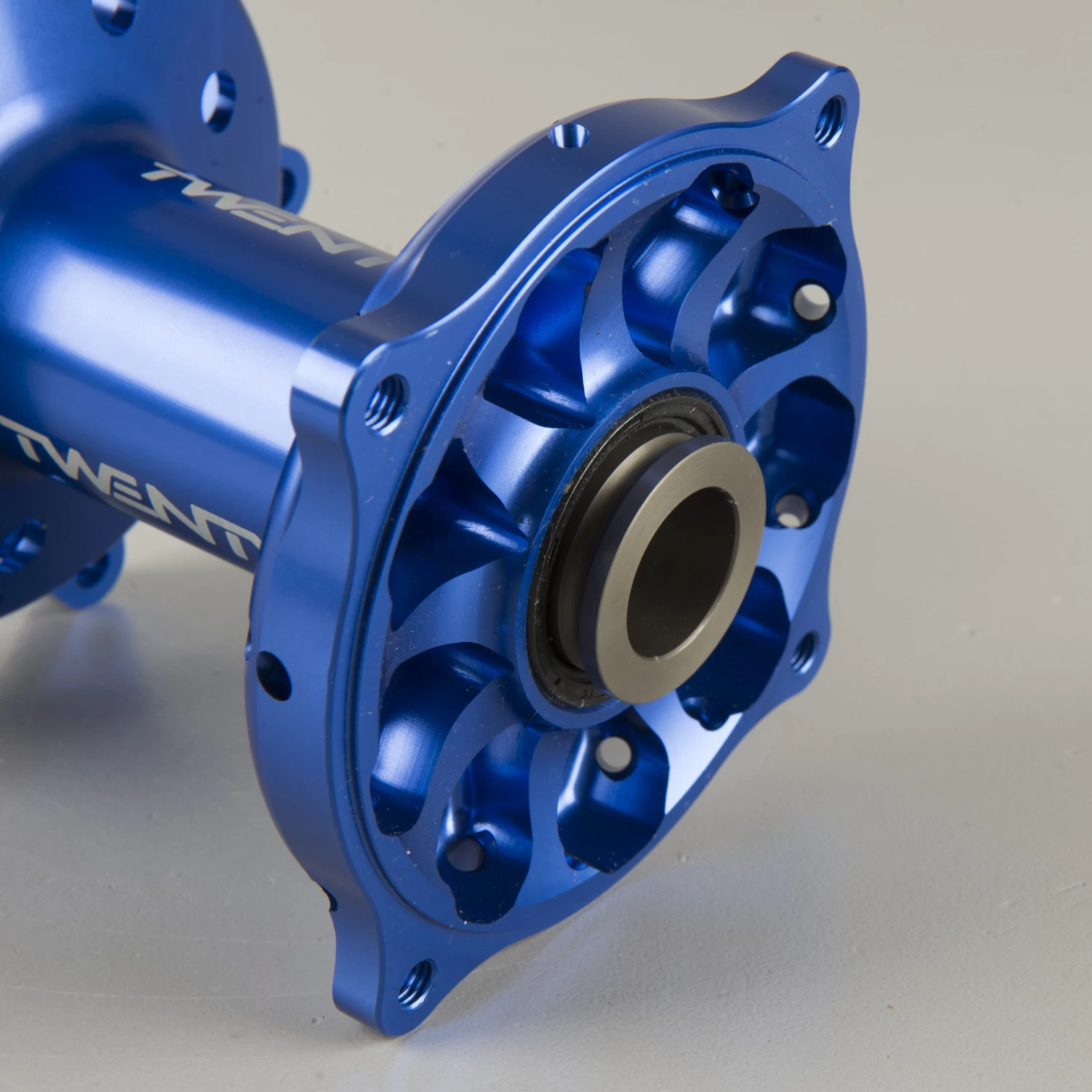 The wheel hub is CNC milled out of 6082-T6 forged aluminum, which gives you a hub that can withstand much more stress than your original wheel. You can also choose from a number of different anodised colours for most motorbikes.
