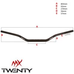 The TwentyMX handlebars are made from 7075-T6 alloy for superior strength. 7075-T6 is an aluminum alloy which is one of the strongest and most durable materials available. The TwentyMX handlebar design combines excellent strength with good flexibility. The material and the manufacturing process combined are so strong that we dare to give you a 1 year guarantee.