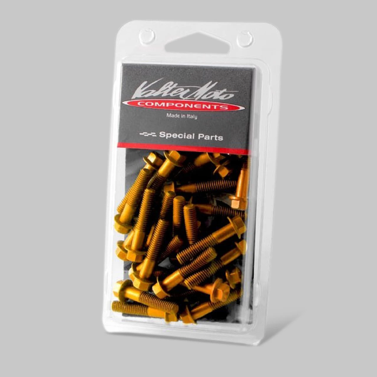 The Valter Moto Cap Engine Bolt Kit includes the most visible bolts and screws of the bike. All bolts are made of aluminium alloy 6082 bar CNC turning machined. Generally, this kit includes fairing, front fender, rear fender and tail bolts/screws.