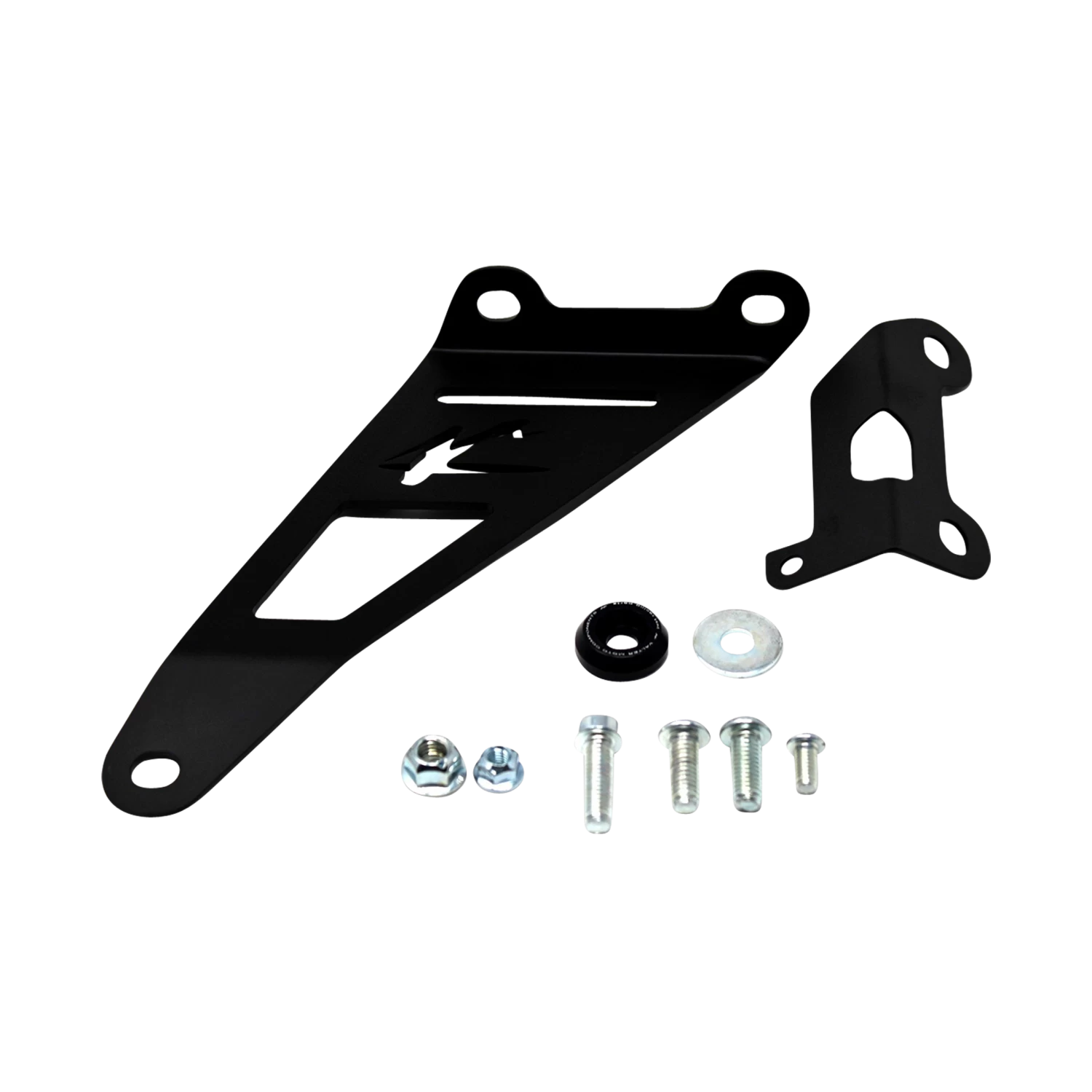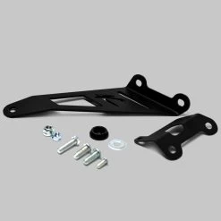 Steel muffler bracket replacement for OEM part. Lighter than OEM bracket and provided with an aluminium conical spacer marked Valter Moto Components.