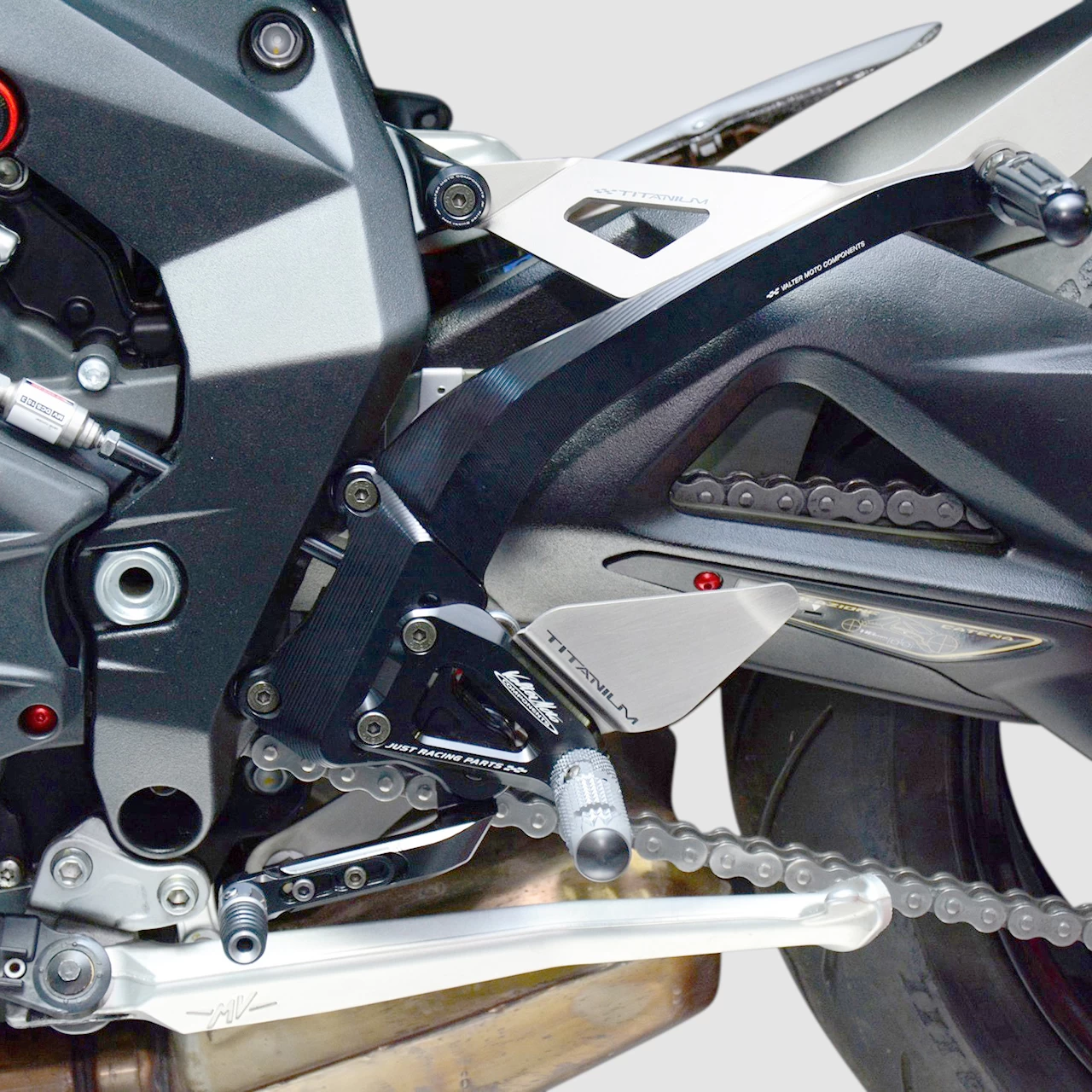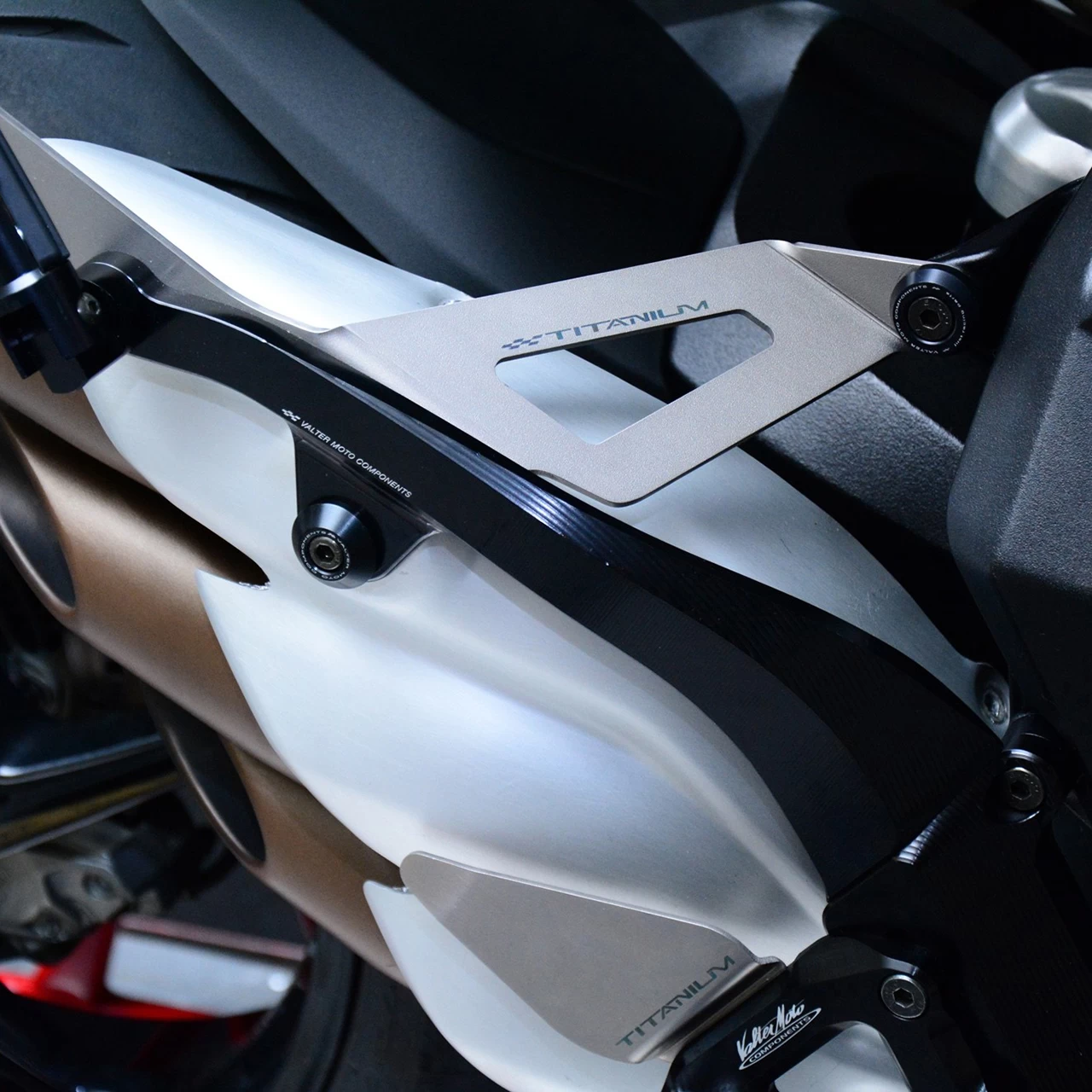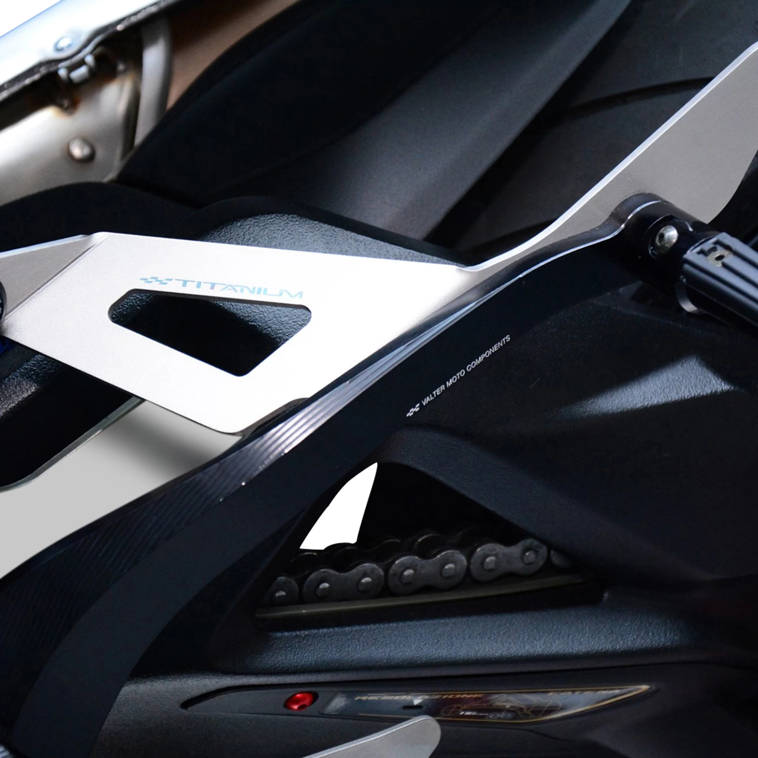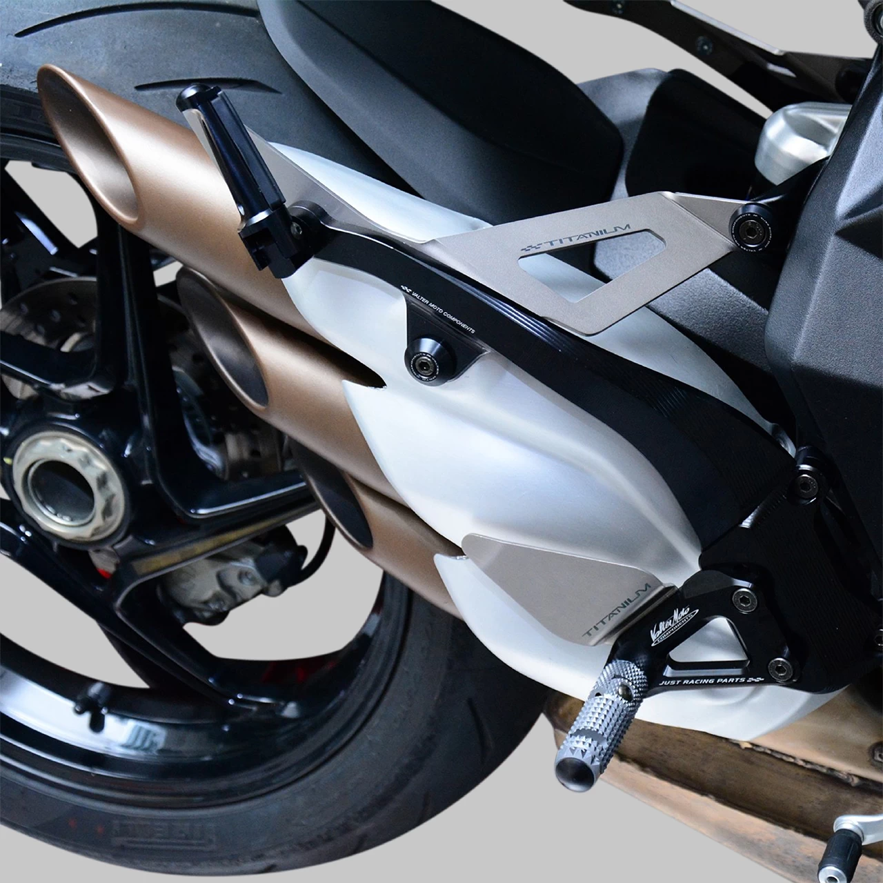 Plate in aluminium and titanium for passenger with fold-up footpegs rubber coated.