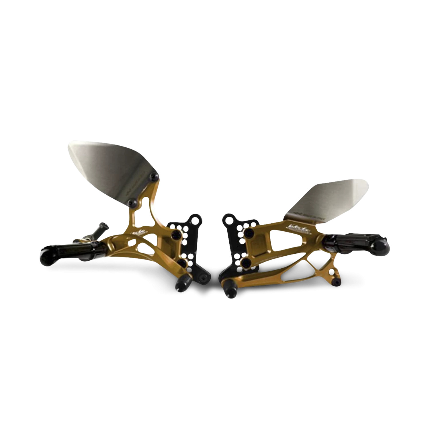 A high-quality foot peg set designed for track racing to get better feeling and the perfect riding position so you can lean in even more and ride even faster!